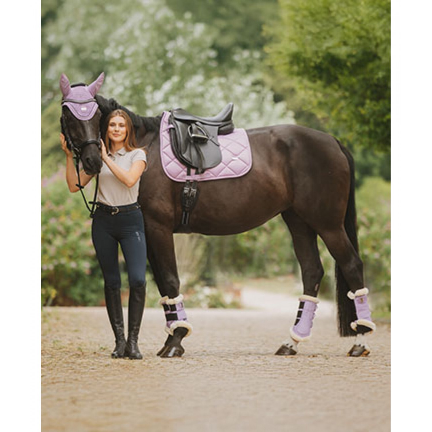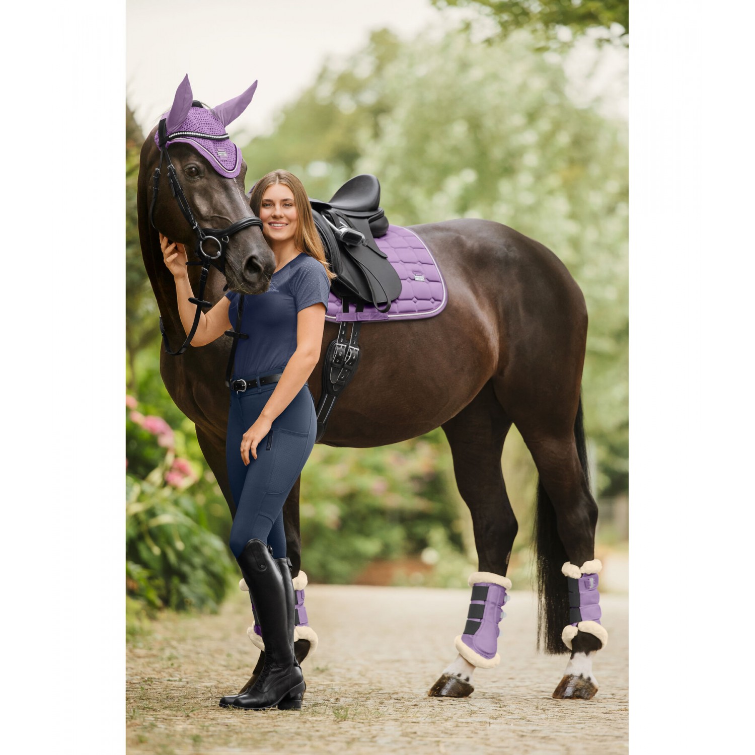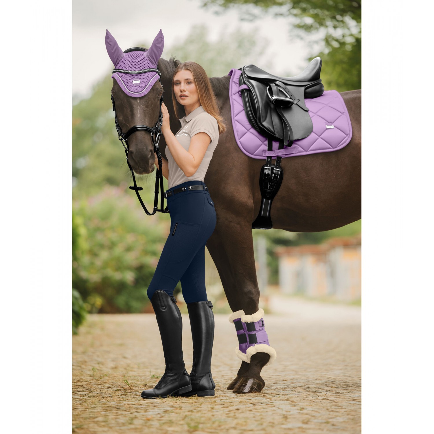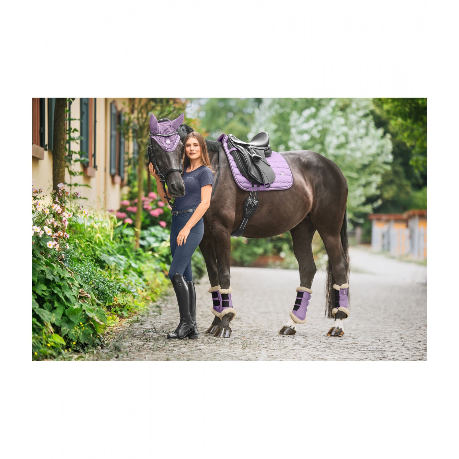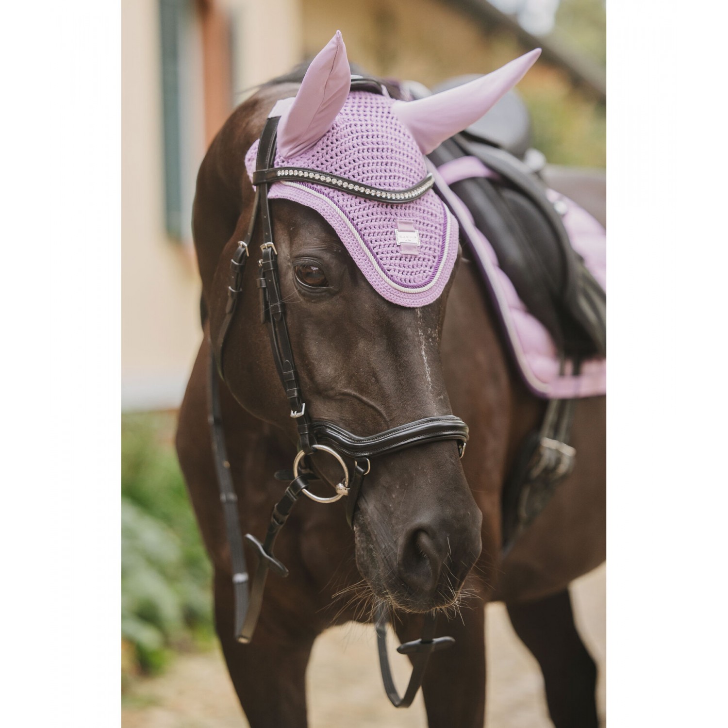 Вязаные уши, с двойным декоративным шнуром в тонких контрастных цветах и ​​небольшой металлической табличкой с логотипом Felix Bühler - серебристого цвета для цветов GL, DF, GC и W, медного цвета для TE и розового золота для TA. Эластичный материал в области ушей для идеального комфорта и липучка для надежного крепления к уздечке. 100% полиэстер.