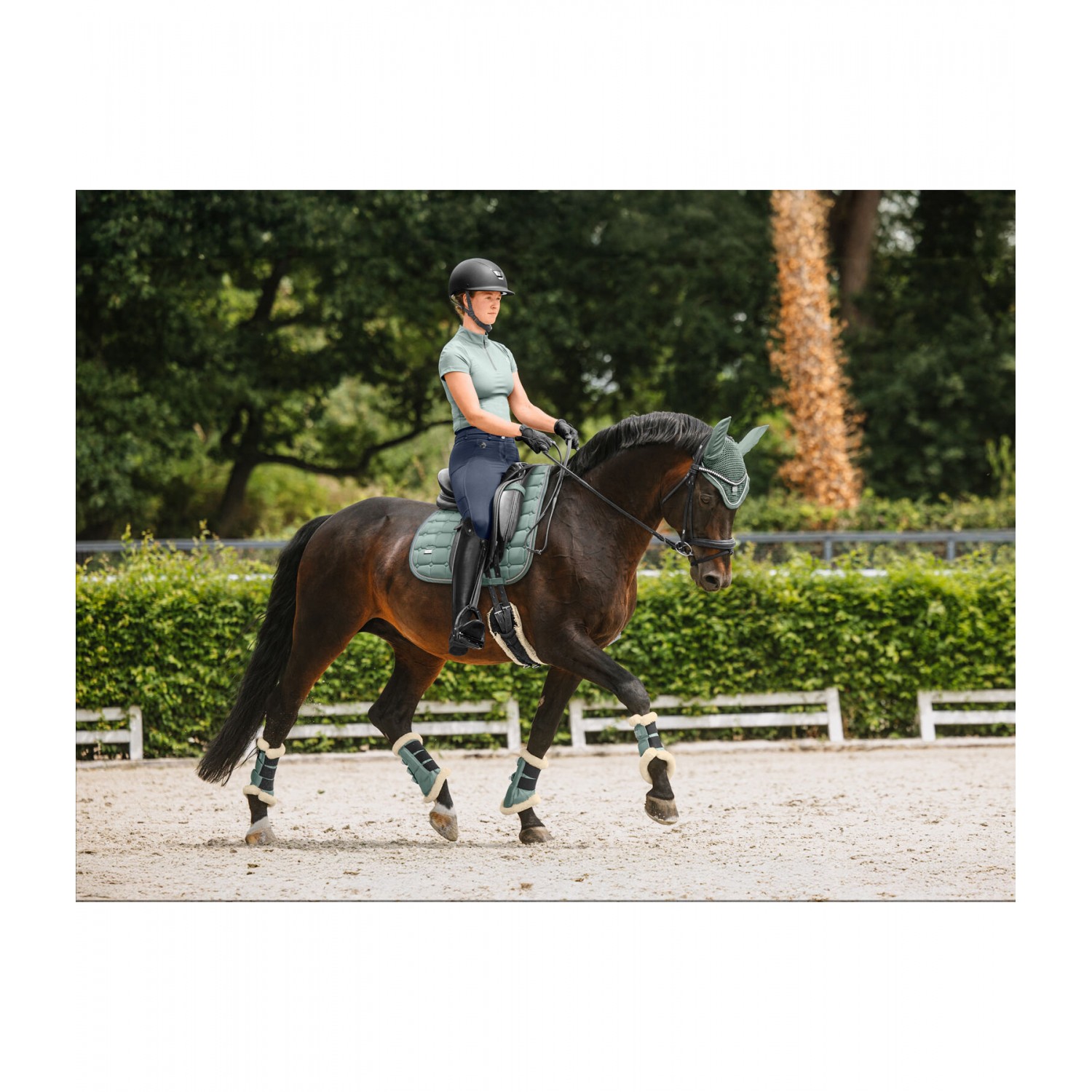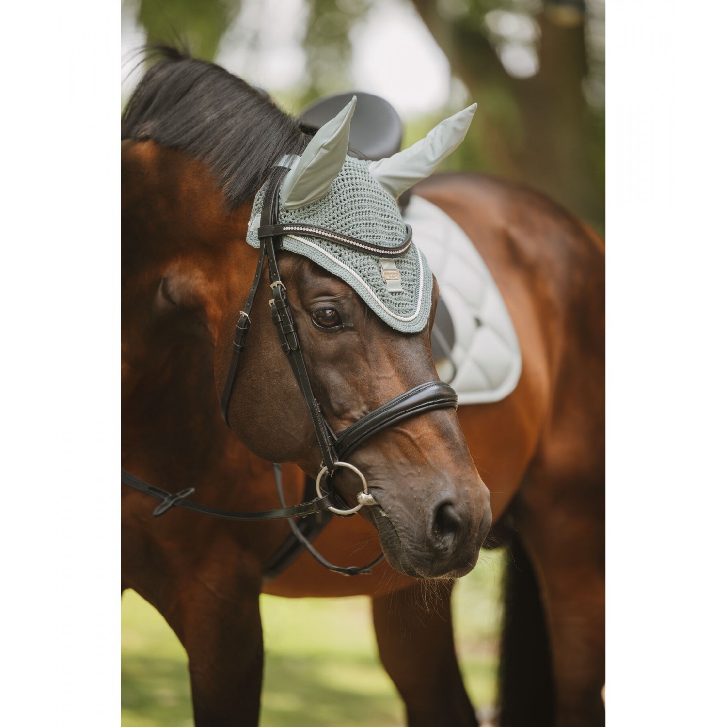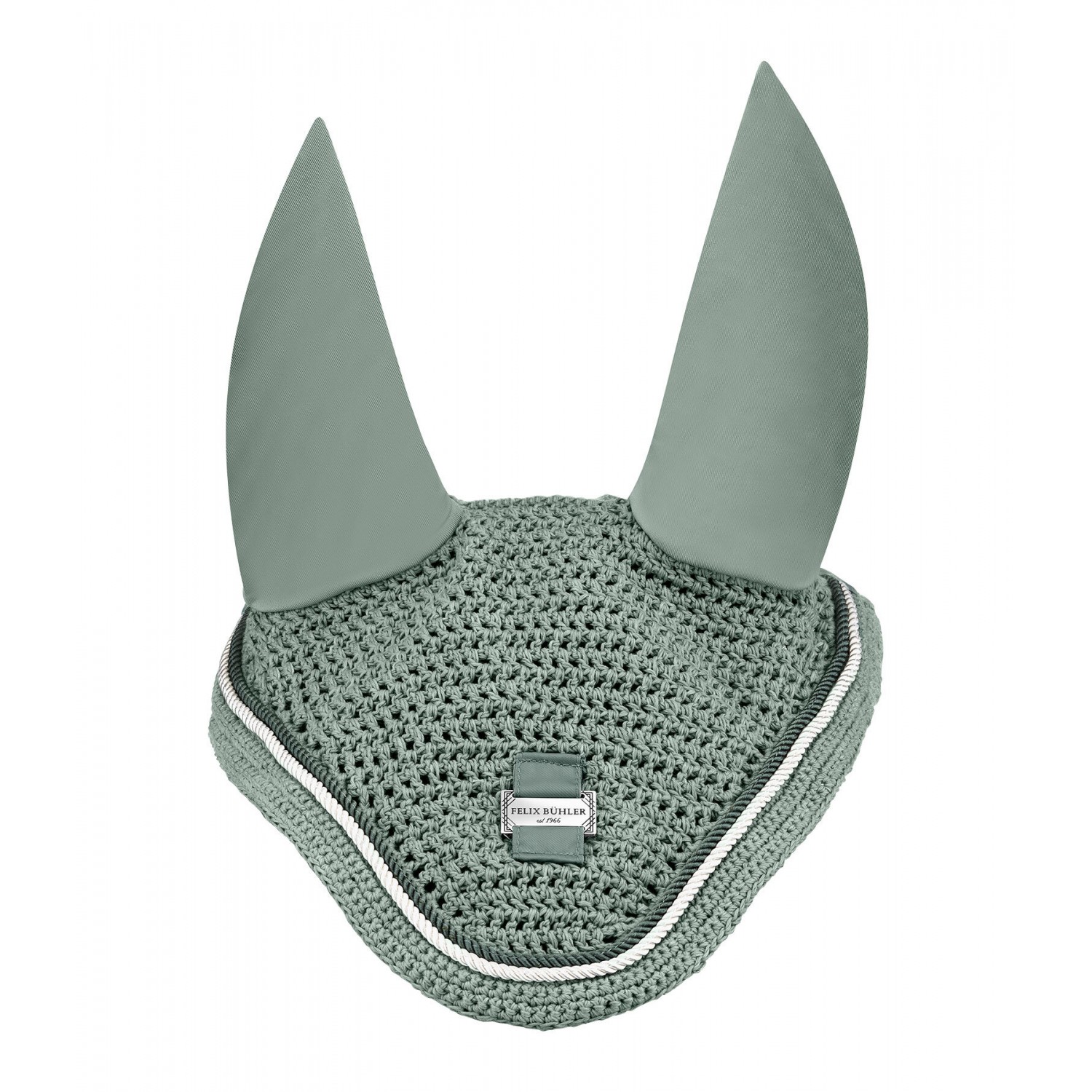 Вязаные уши, с двойным декоративным шнуром в тонких контрастных цветах и небольшой металлической табличкой с логотипом Felix Bühler - серебристого цвета для цветов GL, DF, GC и W, медного цвета для TE и розового золота для TA. Эластичный материал в области ушей для идеального комфорта и липучка для надежного крепления к уздечке. 100% полиэстер.