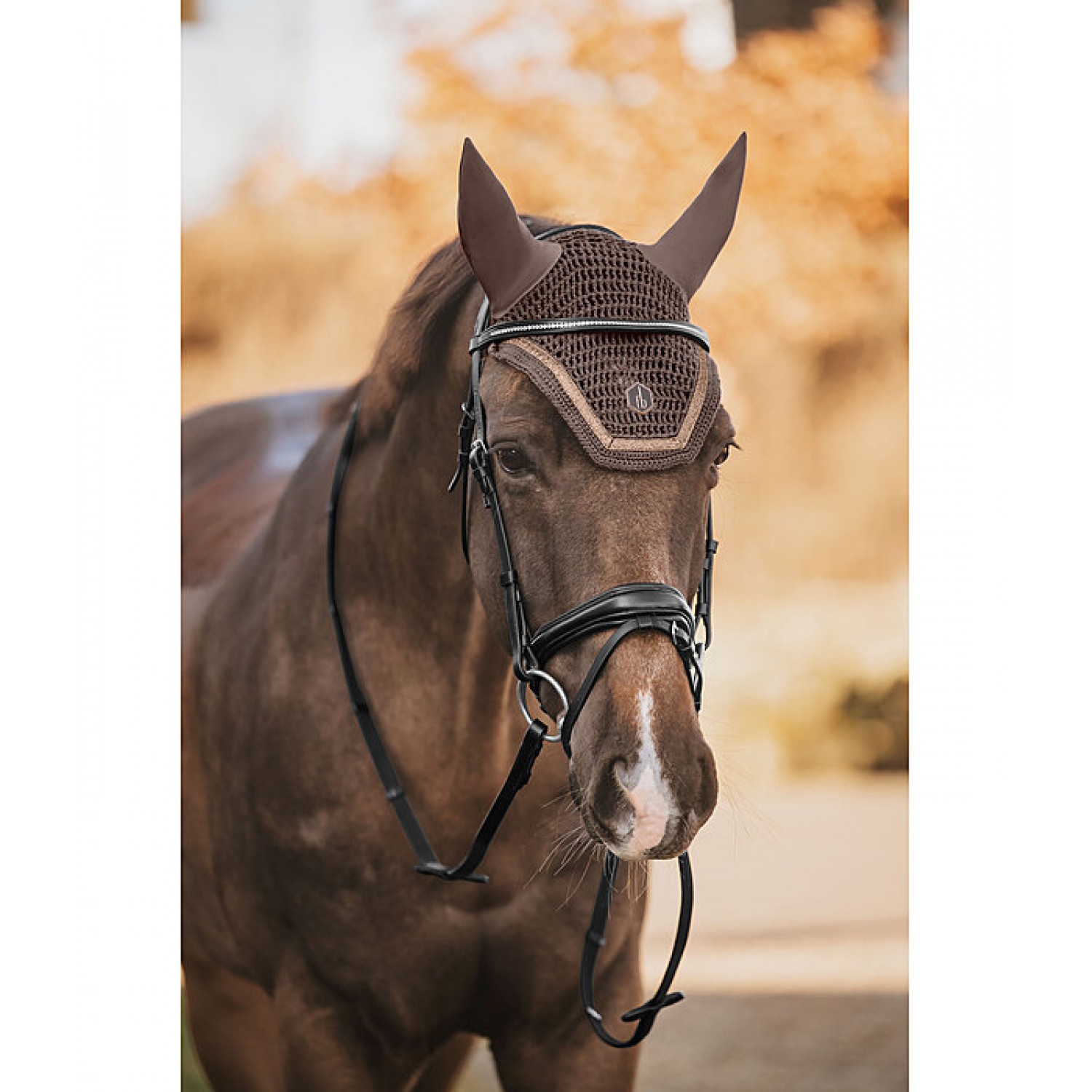 Элегантные ушки с блестящей отделкой и логотипом. Эластичный материал для комфортного ношения. Шапочка: 100% полиэстер, дужки: 88% полиэстер, 12% эластан.