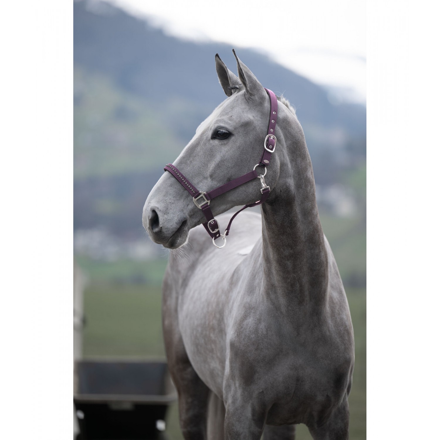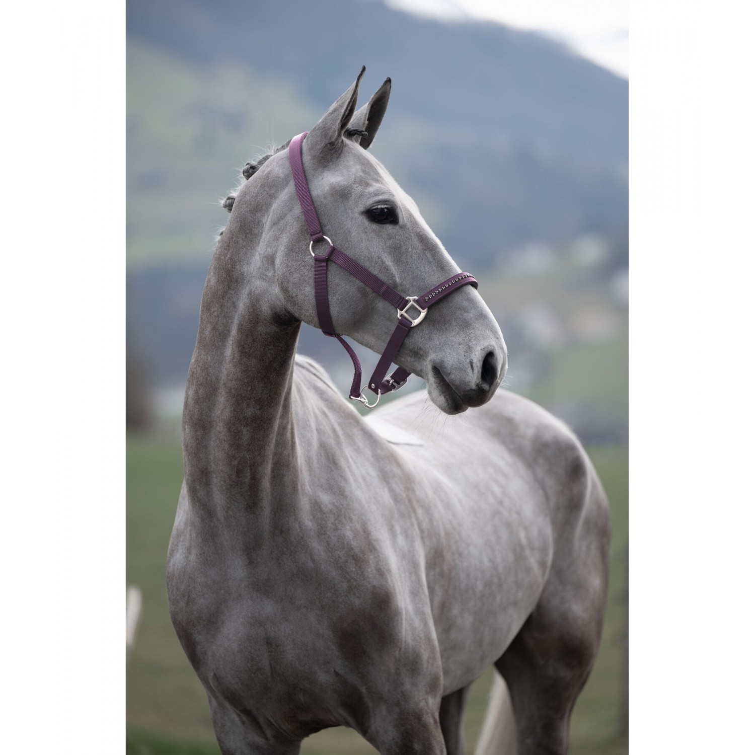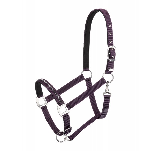 Элегантный, прочный недоуздок с мелкими стразами на носовом ремне и мягкой подкладкой из хлоропреновой резины на оголовье и носовом ремне для комфортного ношения. Регулируется на оголовье и подбородочном ремне с помощью фурнитуры. Недоуздок: 100% полипропилен, подкладка: 100% хлоропреновая резина.