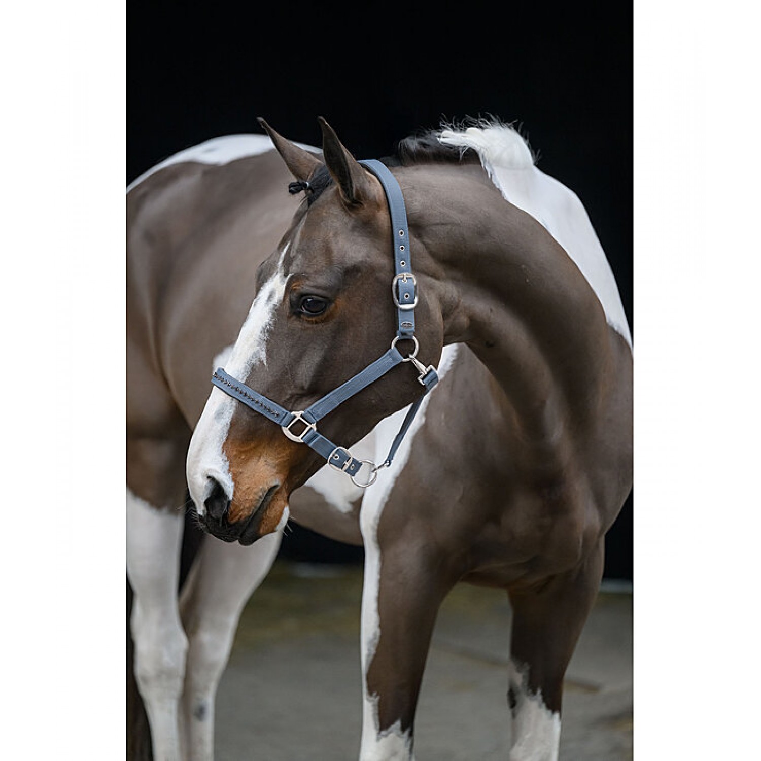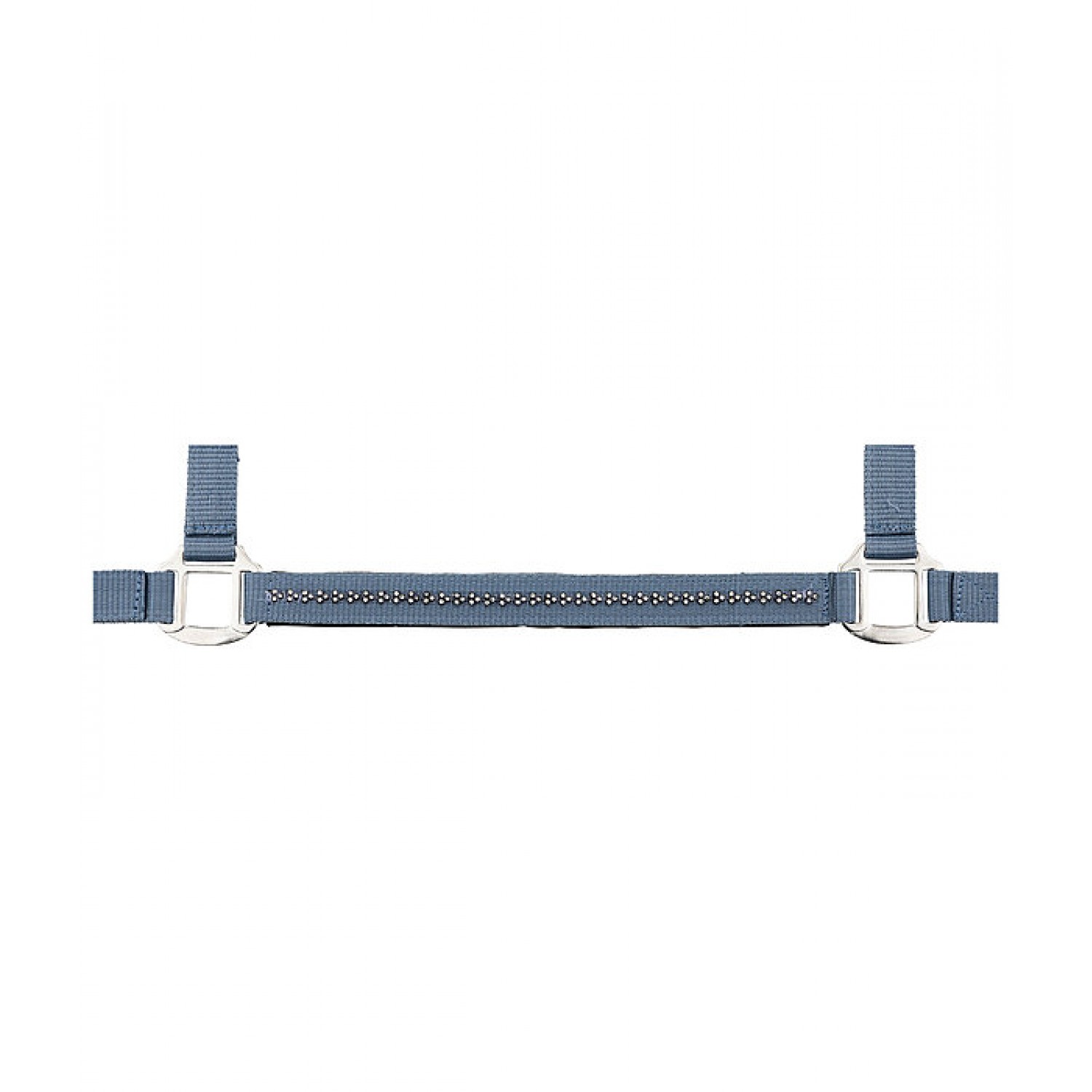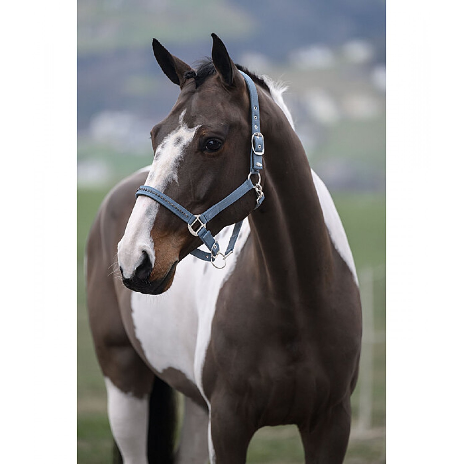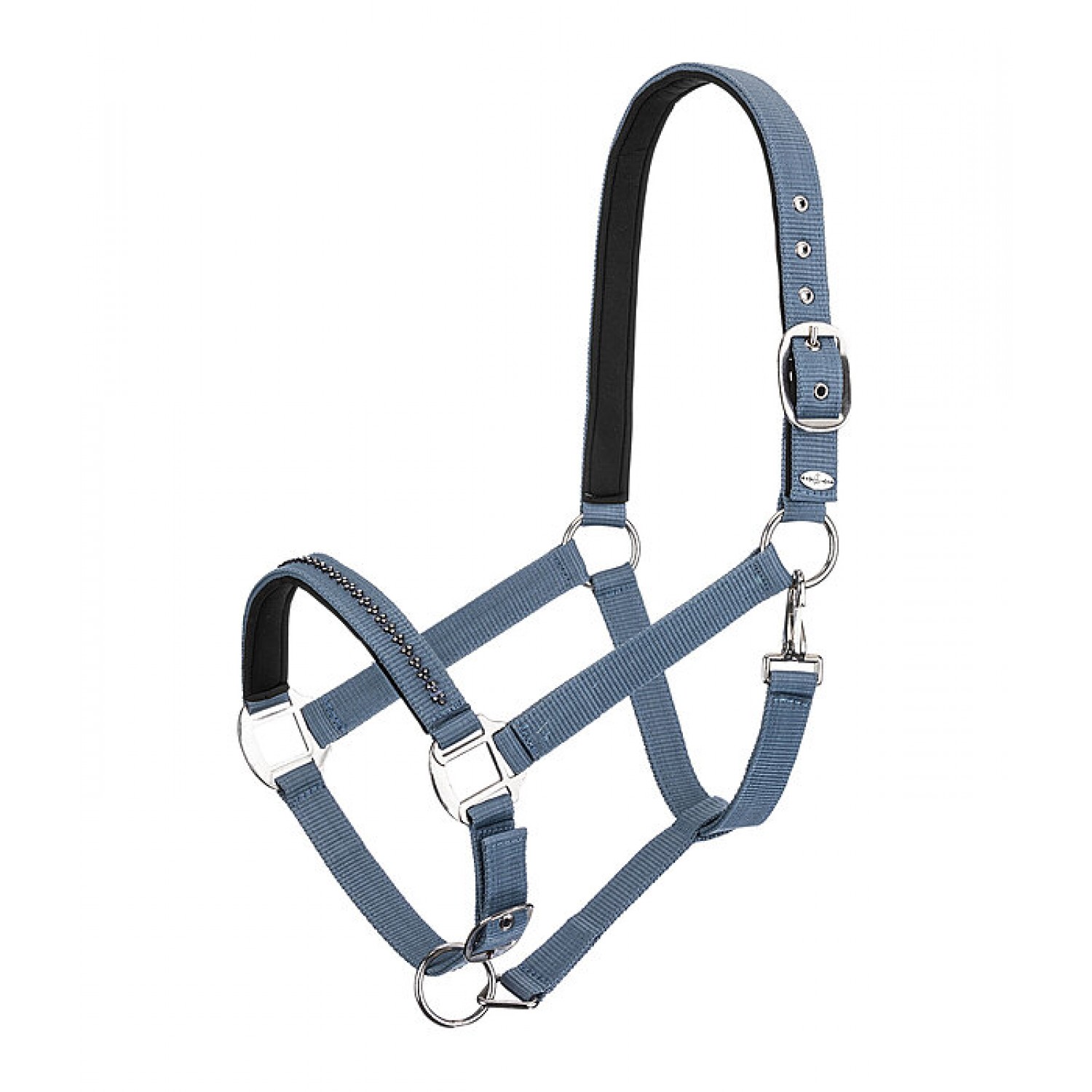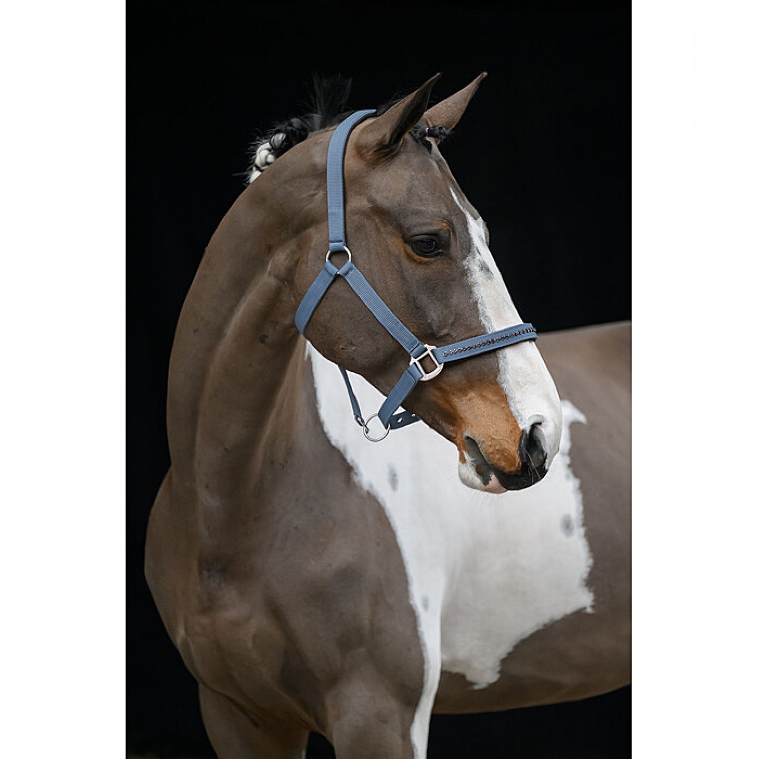 Элегантный, прочный недоуздок с мелкими стразами на носовом ремне и мягкой подкладкой из хлоропреновой резины на оголовье и носовом ремне для комфортного ношения. Регулируется на оголовье и подбородочном ремне с помощью фурнитуры. Недоуздок: 100% полипропилен, подкладка: 100% хлоропреновая резина.