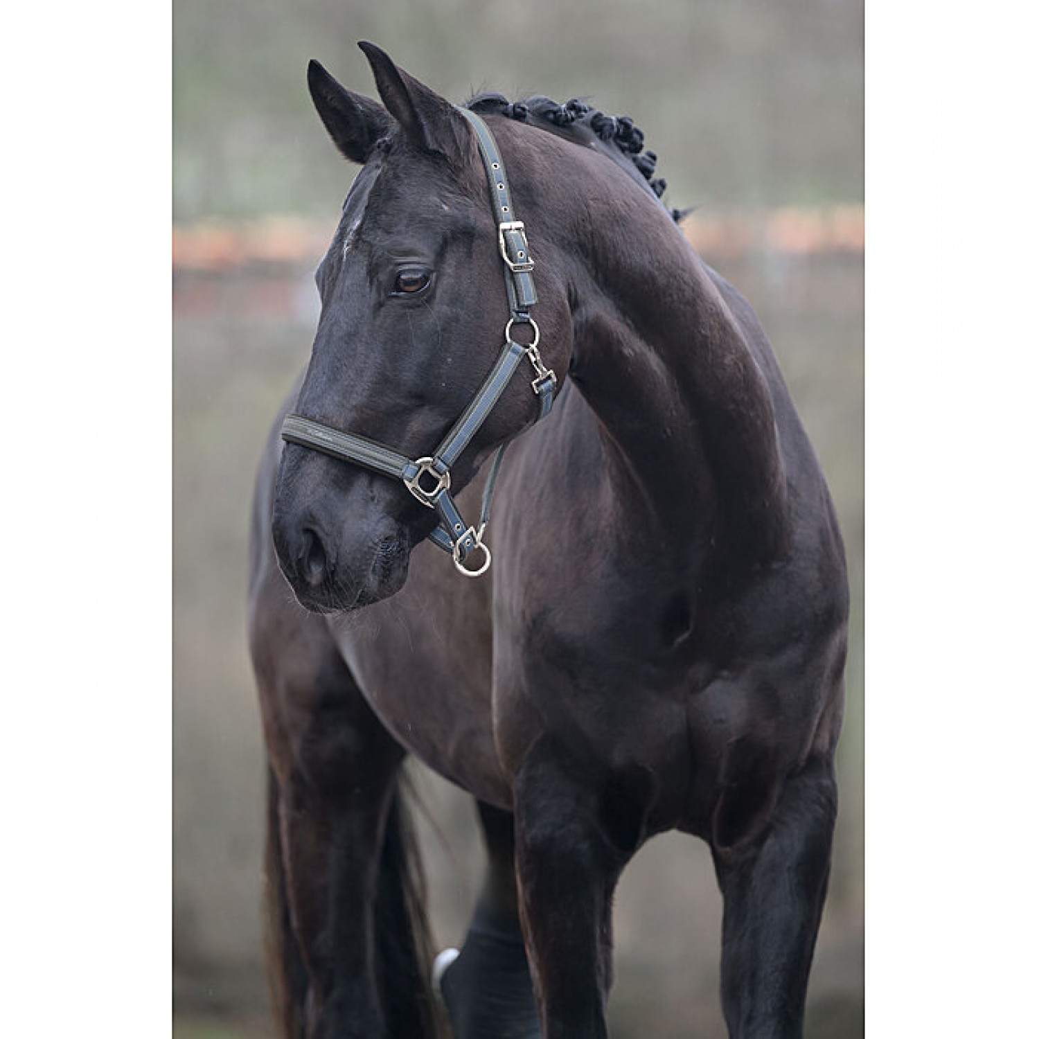 Полосатый недоуздок с красивым тканым узором на носовом ремне. Мягкие подкладки из хлоропреновой резины на оголовье, носовом ремне и щечных ремнях. Легко регулируется на оголовье и подбородочном ремне. Недоуздок изготовлен из 100% полипропилена.