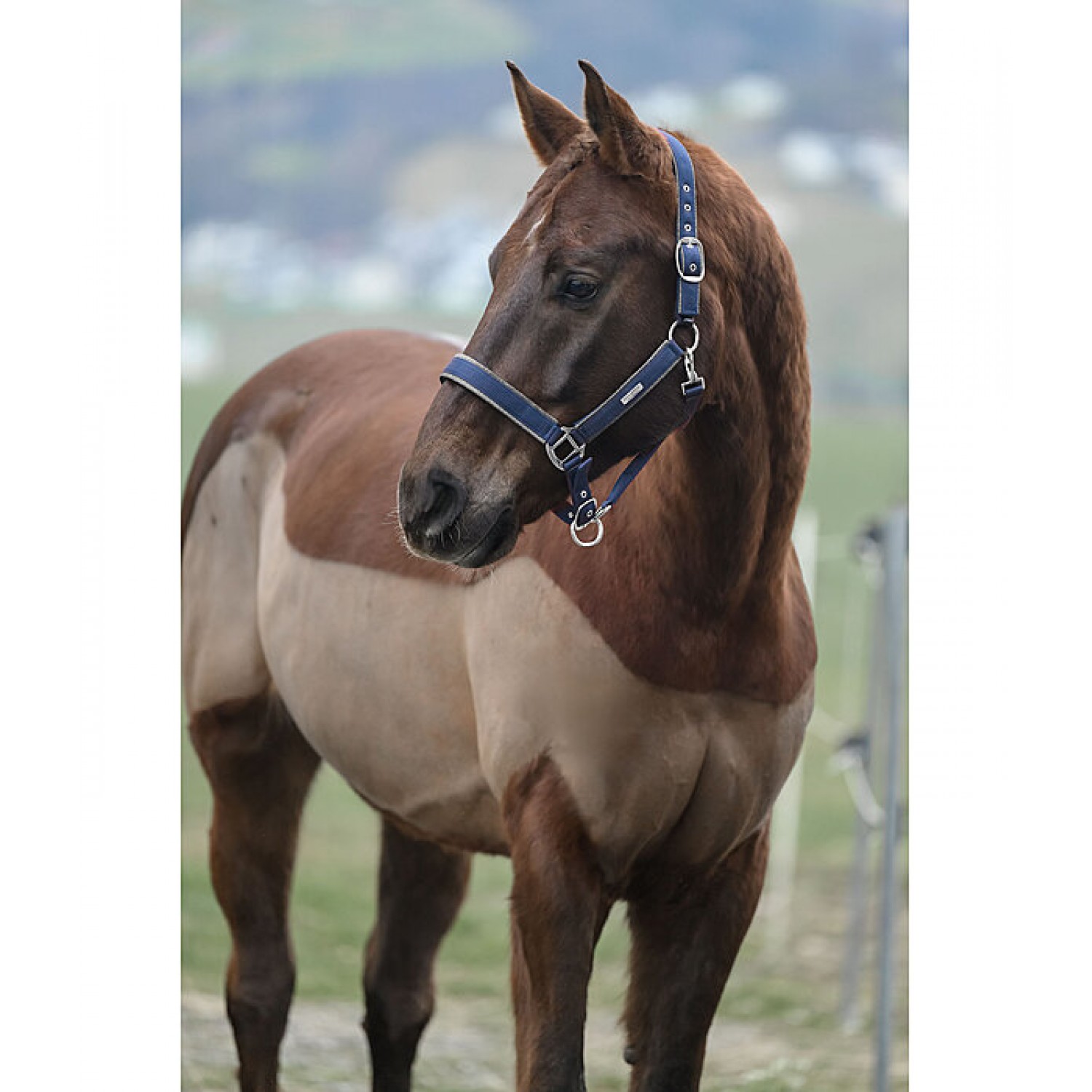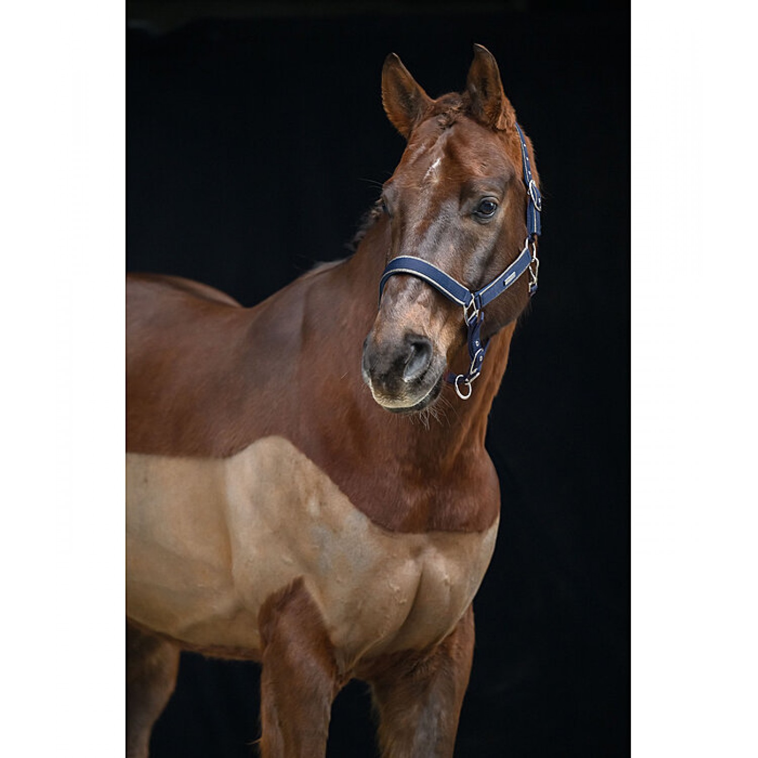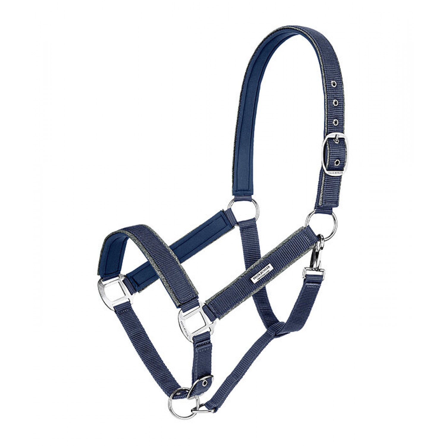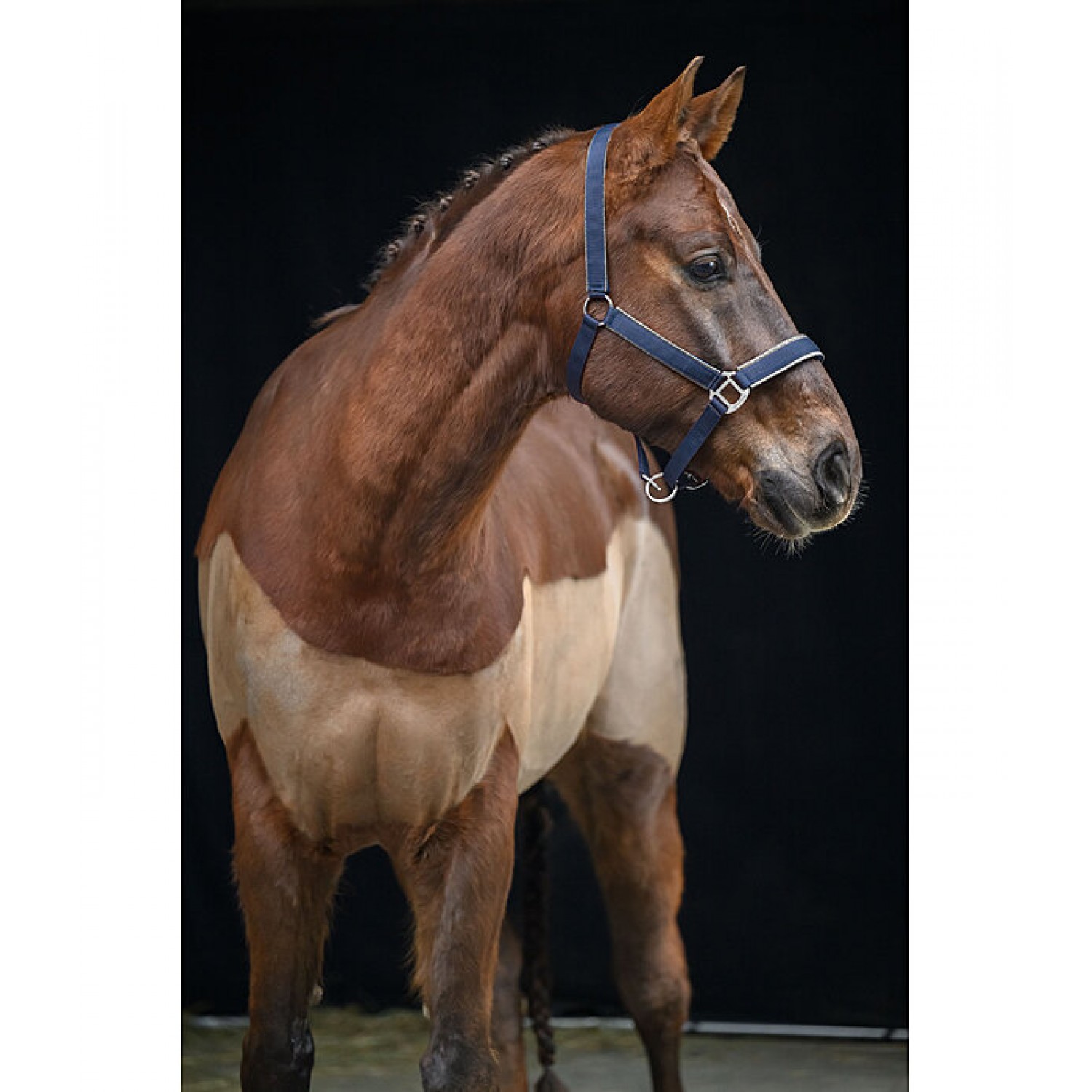 Стильный недоуздок с блестящей окантовкой и фурнитурой в тон. Мягкие подкладки из хлоропреновой резины на оголовье, носовом ремне и щечных накладках обеспечивают комфорт при ношении. Металлическая пластина с гравировкой логотипа на щечной накладке. Легко регулируется на оголовье и подбородочном ремне. 100% полипропилен.