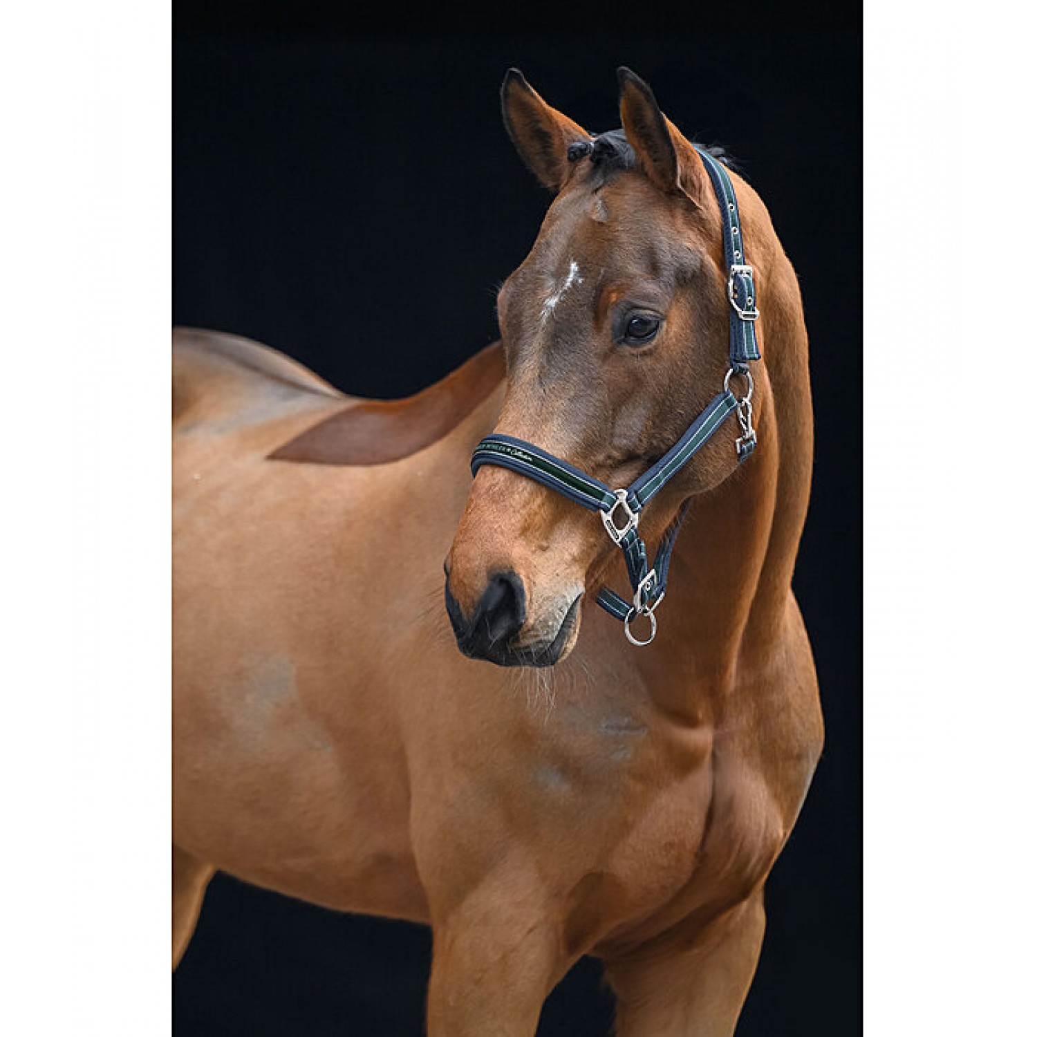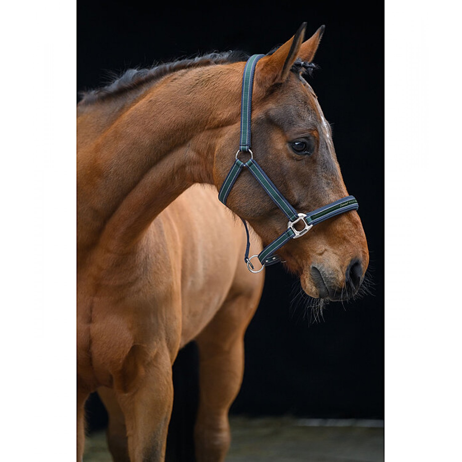 Полосатый недоуздок с красивым тканым узором на носовом ремне. Мягкие подкладки из хлоропреновой резины на оголовье, носовом ремне и щечных ремнях. Легко регулируется на оголовье и подбородочном ремне. Недоуздок изготовлен из 100% полипропилена.
