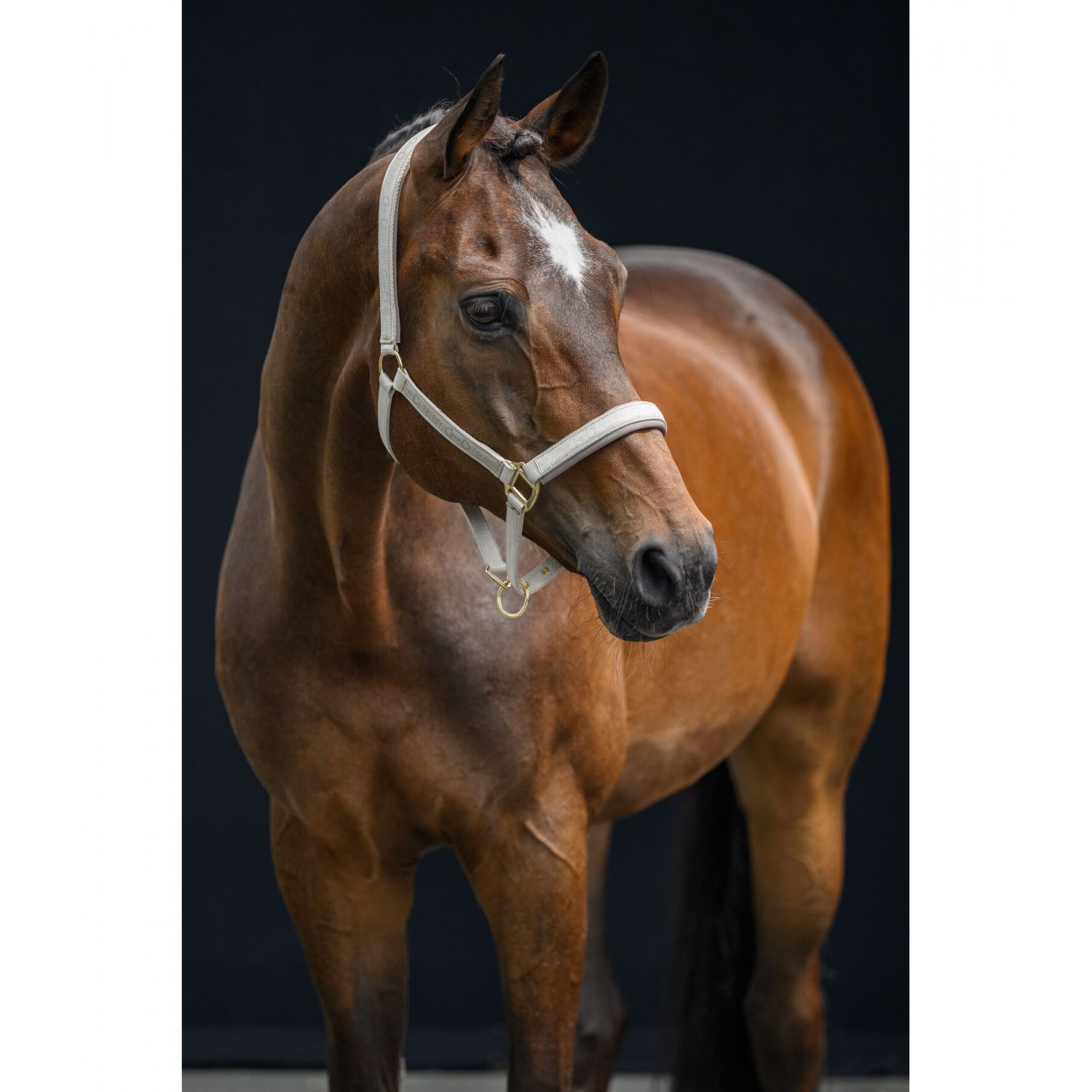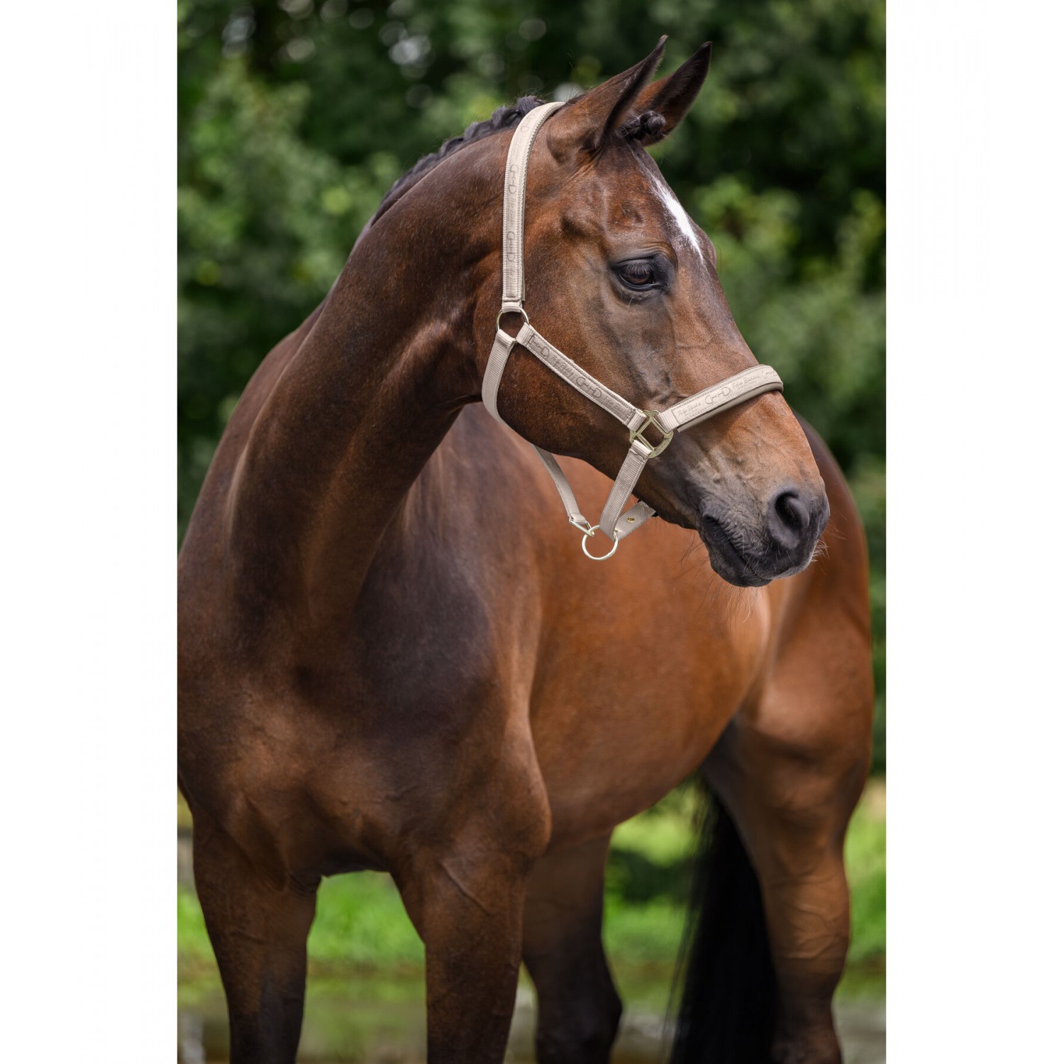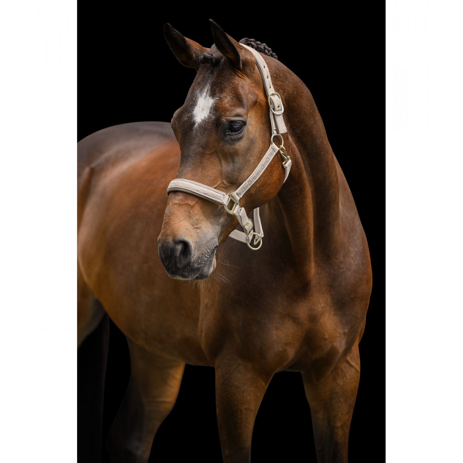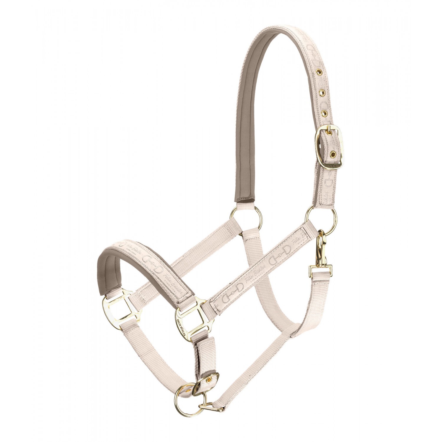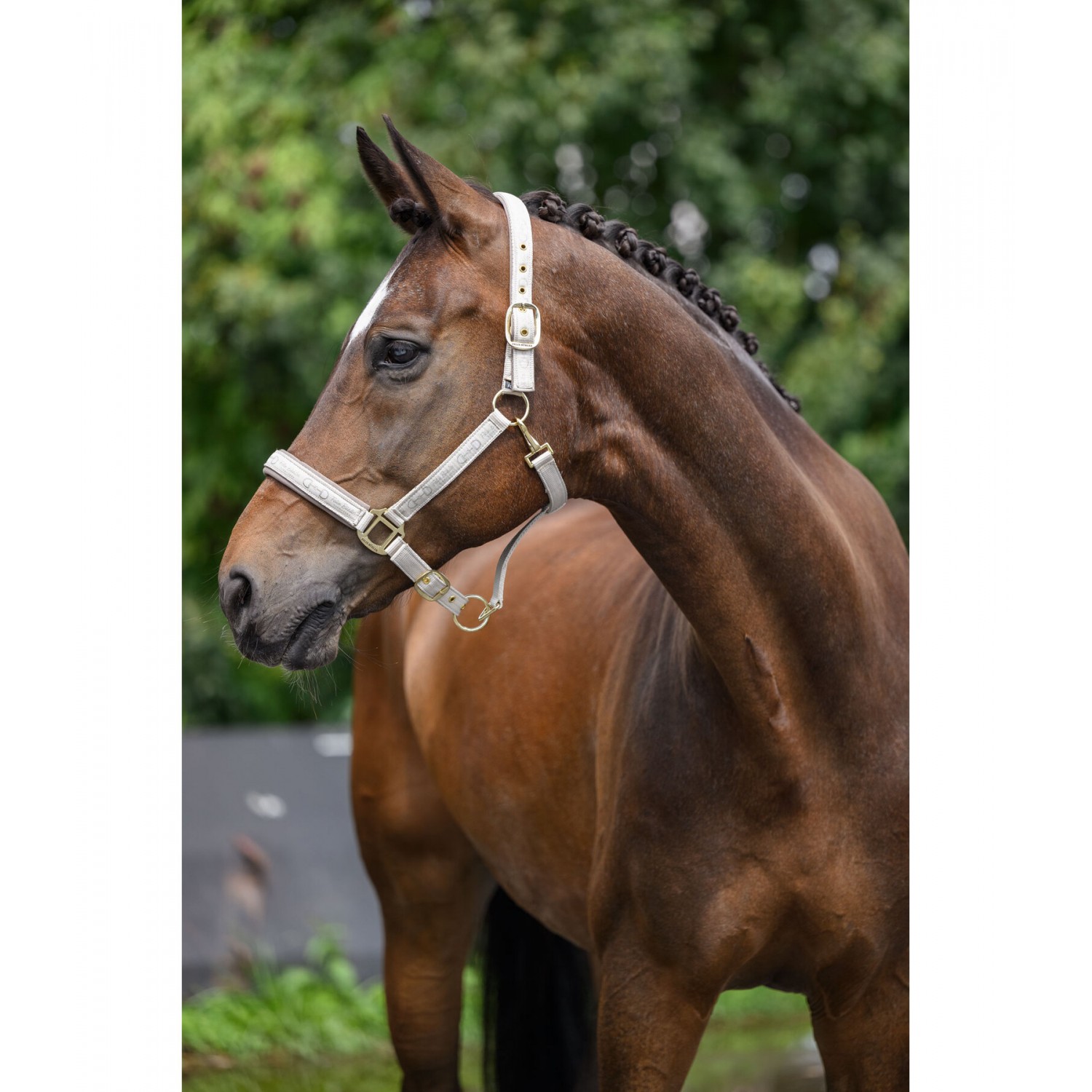 Элегантный недоуздок с блестящим узором в виде трензеля на оголовье и щечных ремнях, а также с мягкой подкладкой из хлоропреновой резины для оптимального комфорта. Имеет застежку-карабин и фурнитуру в тон. Недоуздок: 100% полипропилен; подкладка: 100% хлоропреновая резина.