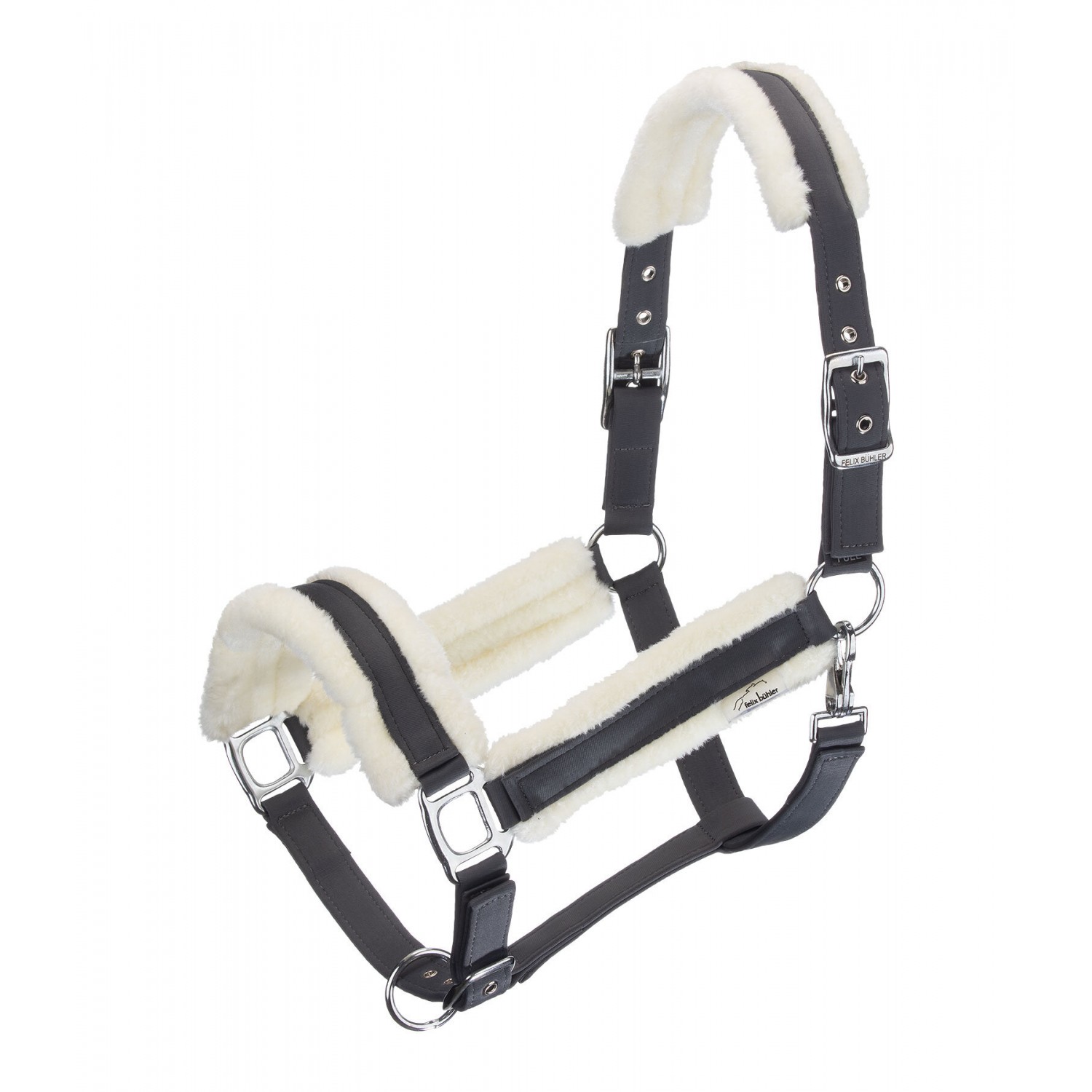 Недоуздок обеспечивающий исключительный комфорт благодаря мягкой флисовой подкладке на оголовье, носовом ремне и обеих щечных частях. Регулируется с обеих сторон на оголовье и на носовом ремне. Фурнитура серебристого цвета. 100% полипропилен.