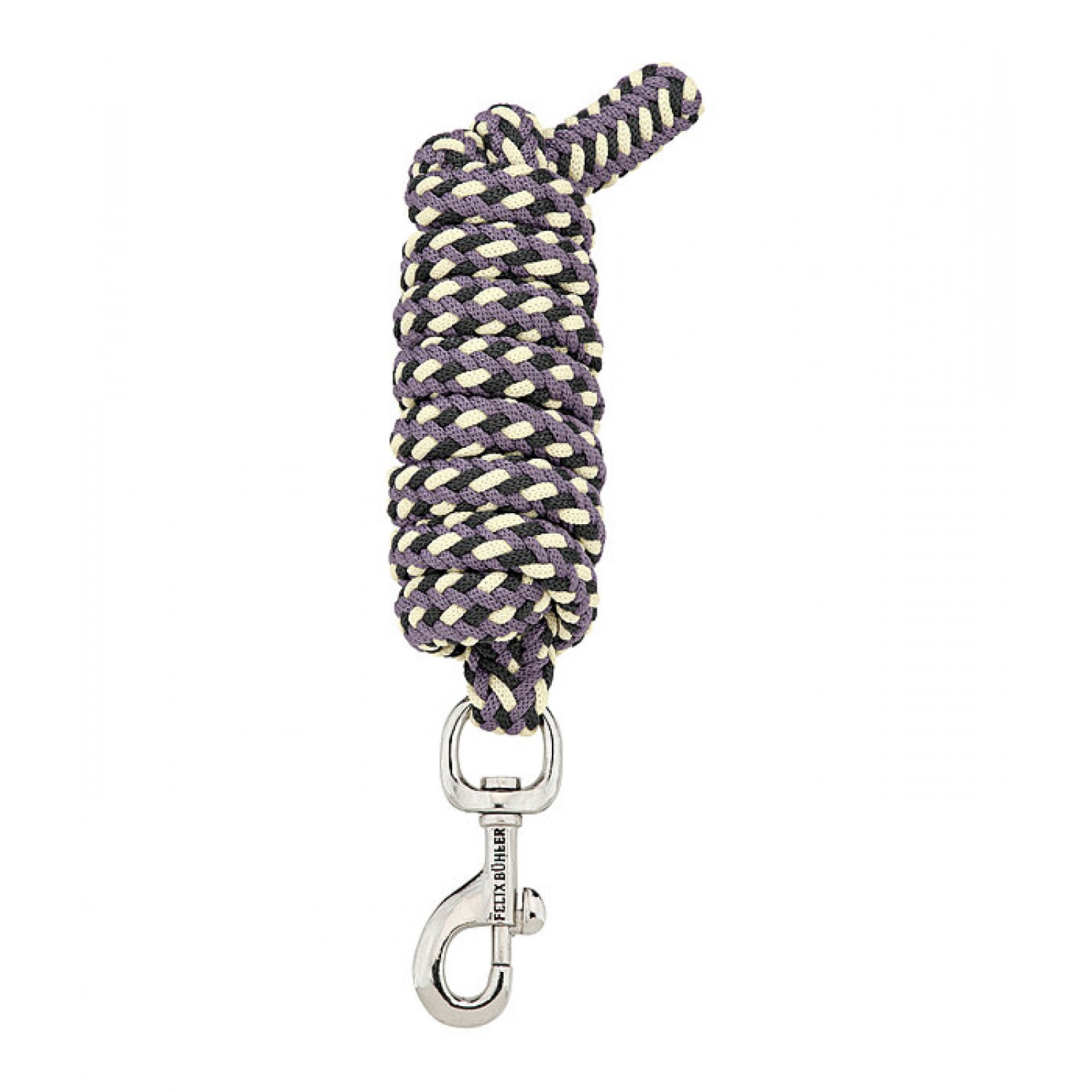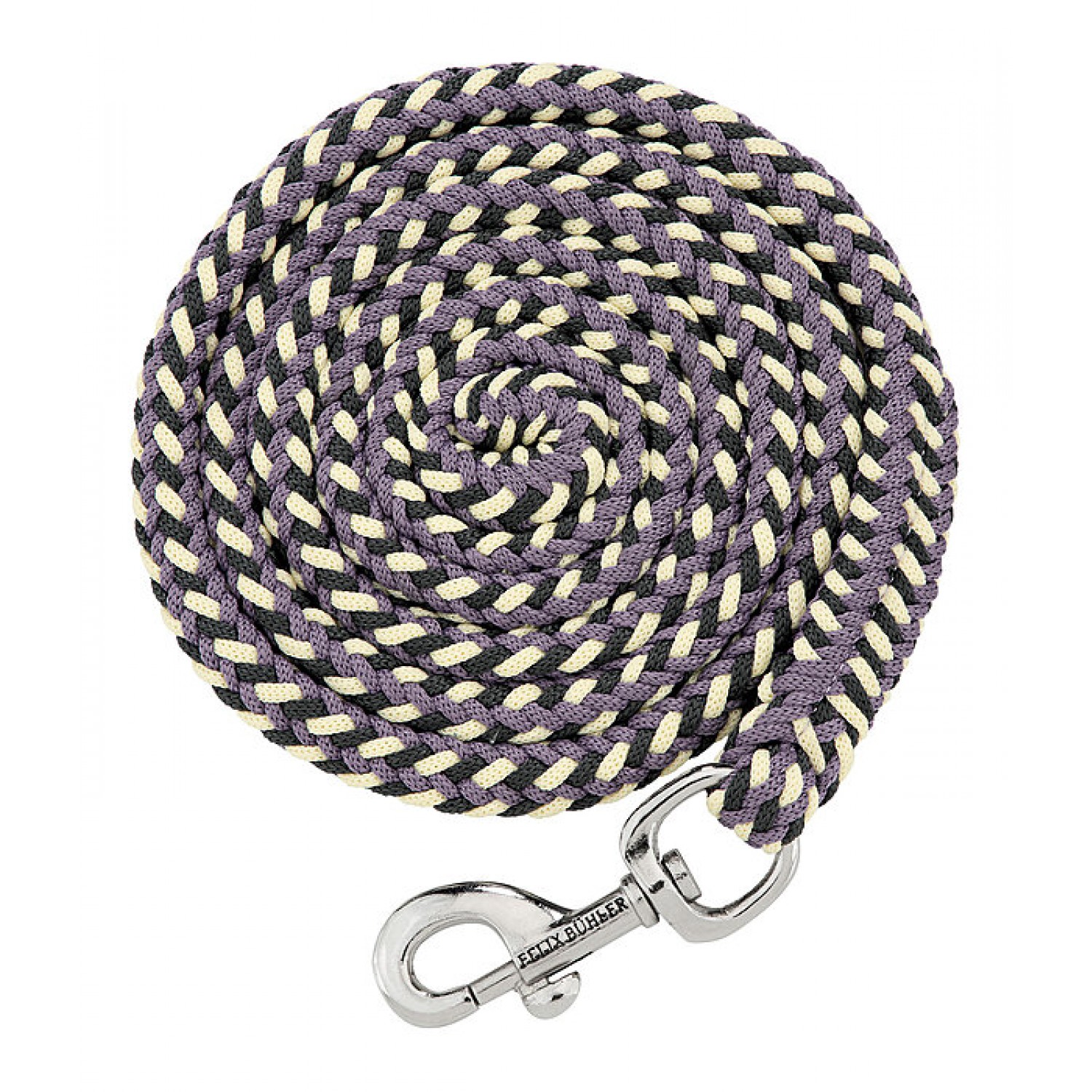 Прочный, круглоплётеный, трёхцветный чомбур с карабином. Длина 2 м. 100% полиэстер. Идеально подходит к недоуздку 310056.
