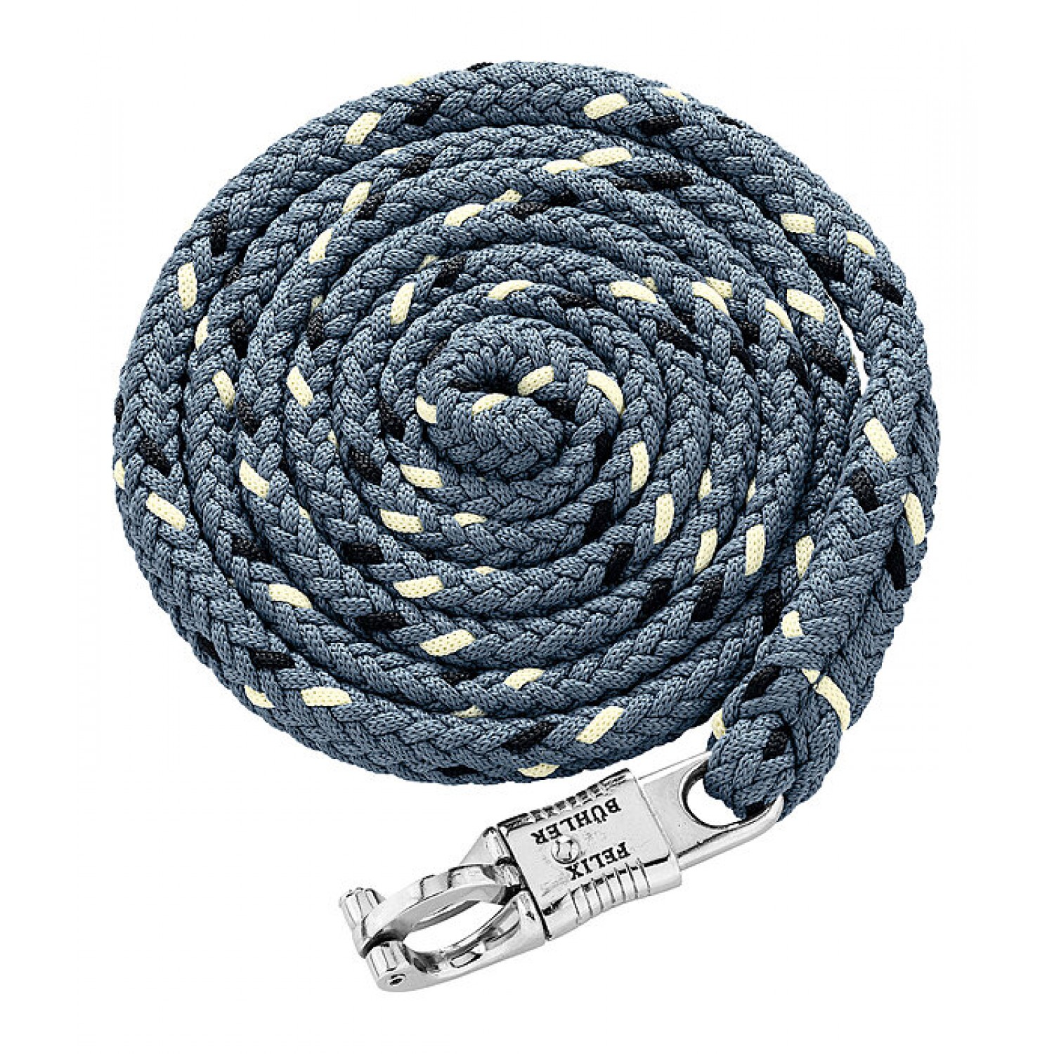 Прочный, круглоплётный, трёхцветный чомбур с паническим карабином. Длина 2 м. 100% полиэстер. Идеально подходит к недоуздку 310057.