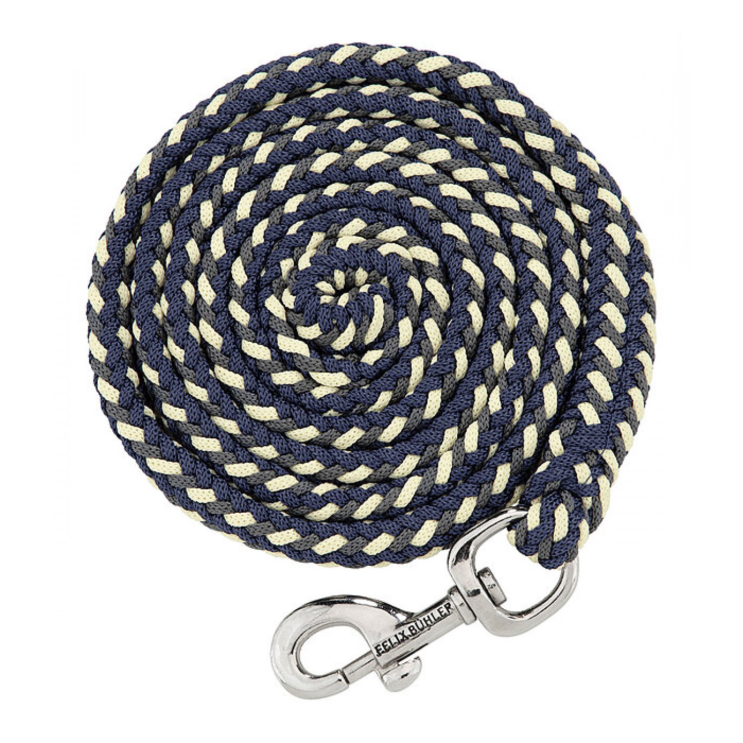 Прочный, круглоплётеный, трёхцветный чомбур с карабином. Длина 2 м. 100% полиэстер. Идеально подходит к недоуздку 310056.