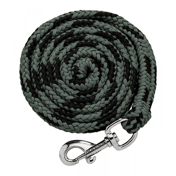 Прочный двухцветный чомбур круглого плетения с карабином. Фурнитура серебристого цвета. Длина 2 м. 100% полиэстер. Идеально подходит к недоуздку 310053.