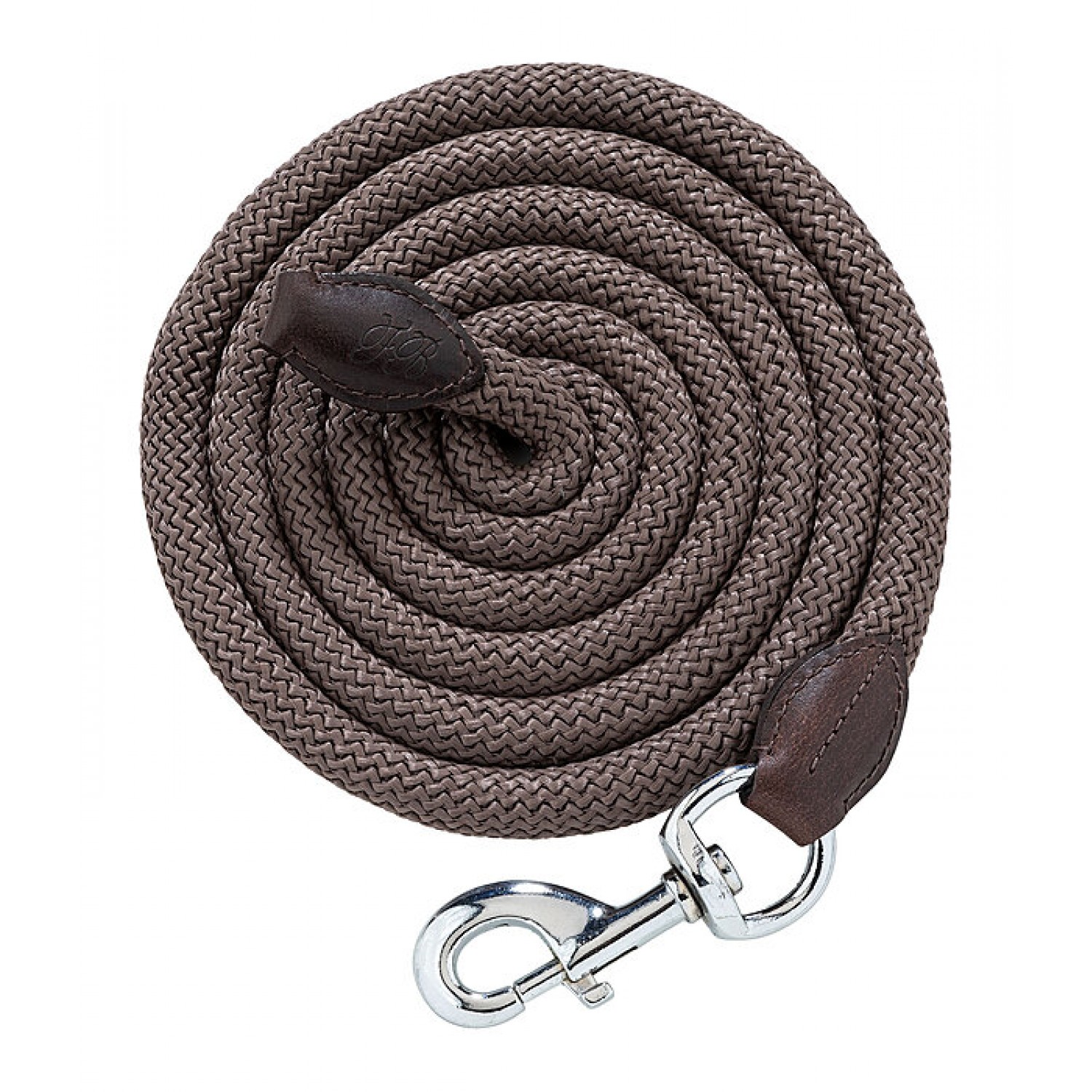 Приятная мягкая, плетеная прочная веревка с кожаными концами для элегантного вида. Подходит для недоуздка Kate (440499) и Meghan (440685). С серебристым карабином. 2 м 100% полипропилен.