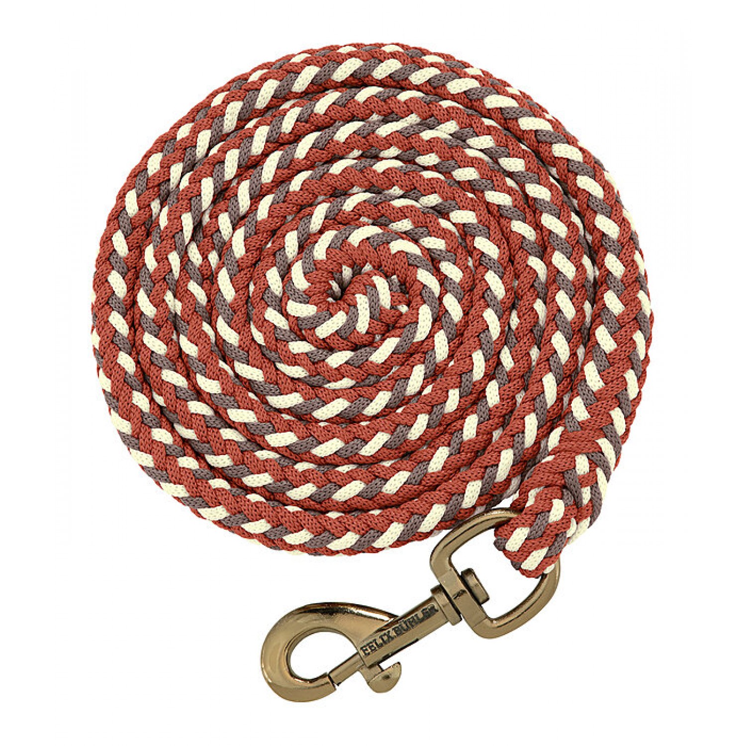 Прочный, круглоплётеный, трёхцветный чомбур с карабином. Длина 2 м. 100% полиэстер. Идеально подходит к недоуздку 310056.