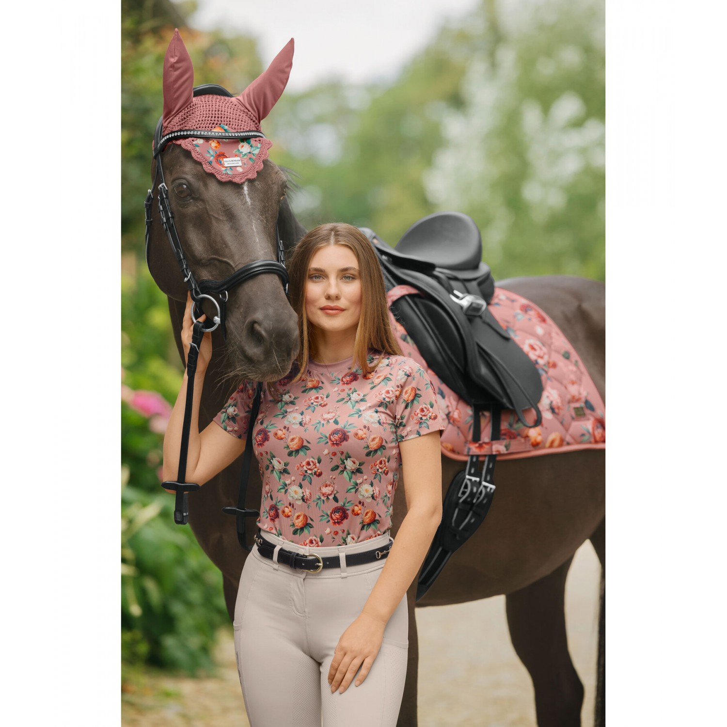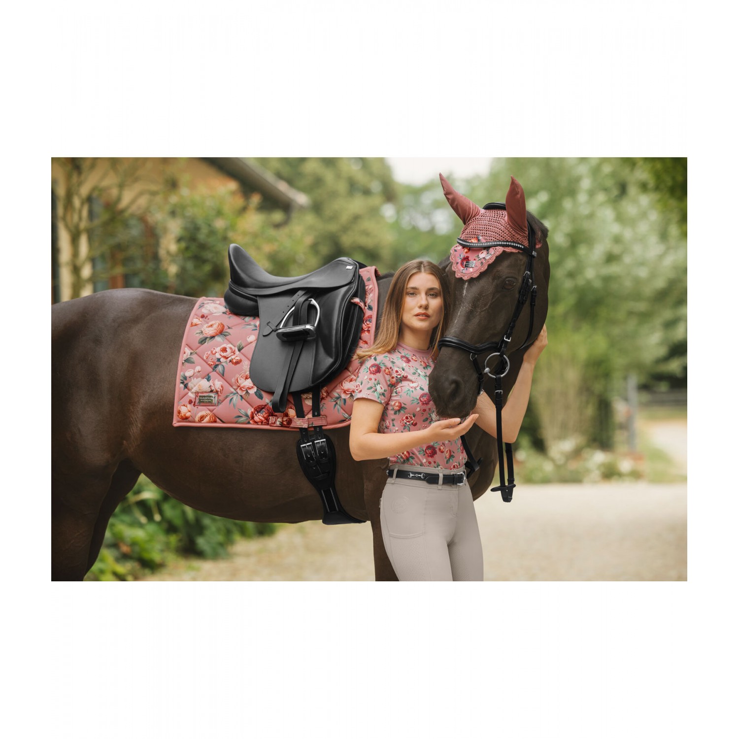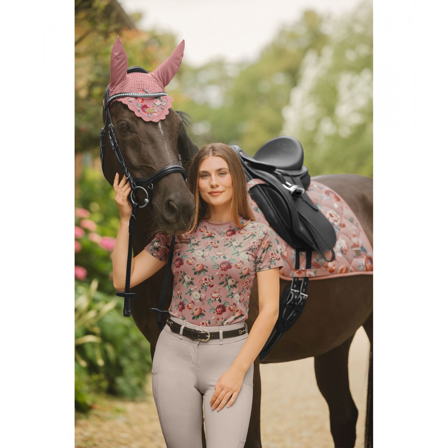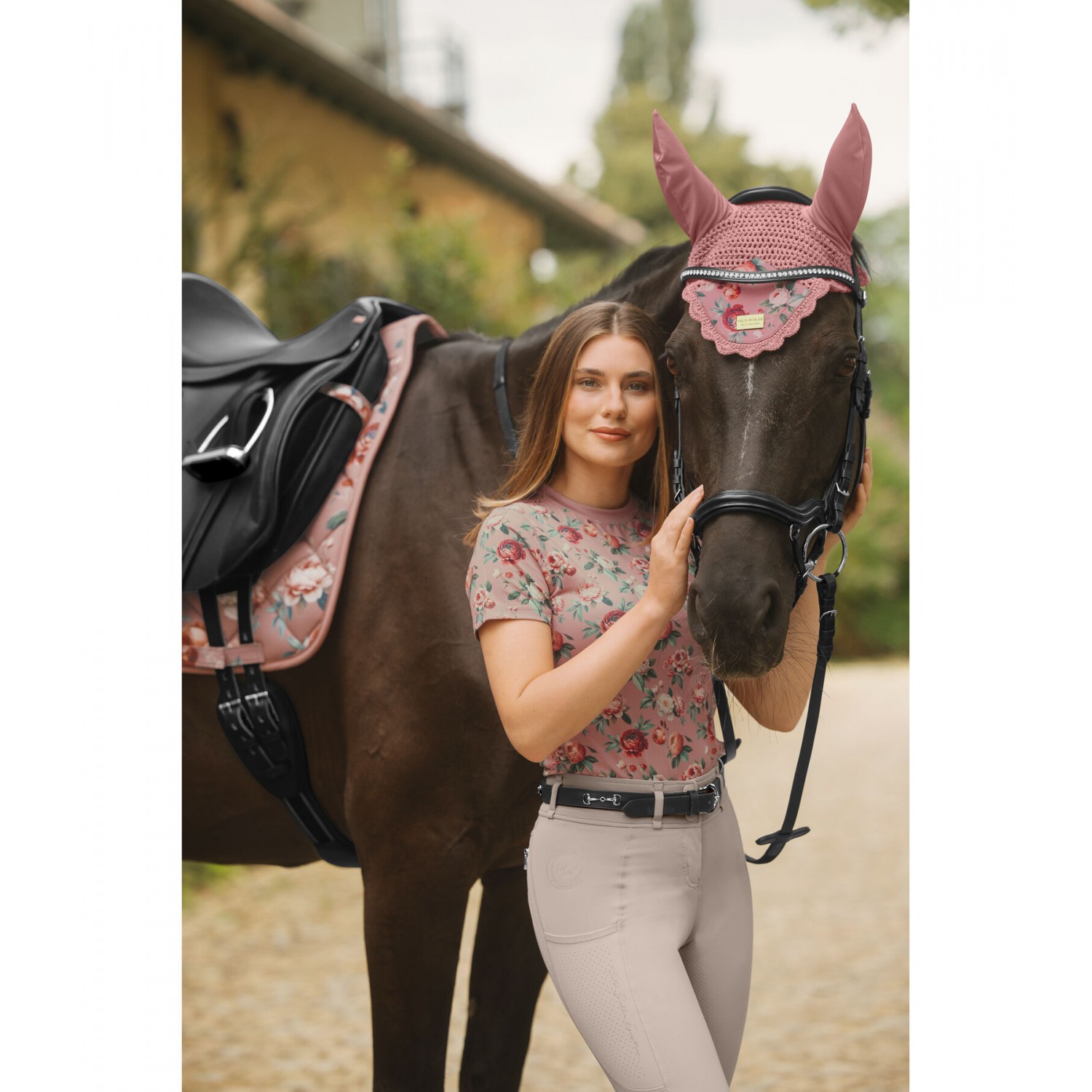 Классические ушки с цветочным принтом по всей поверхности и металлическим логотипом. 100% полиэстер.