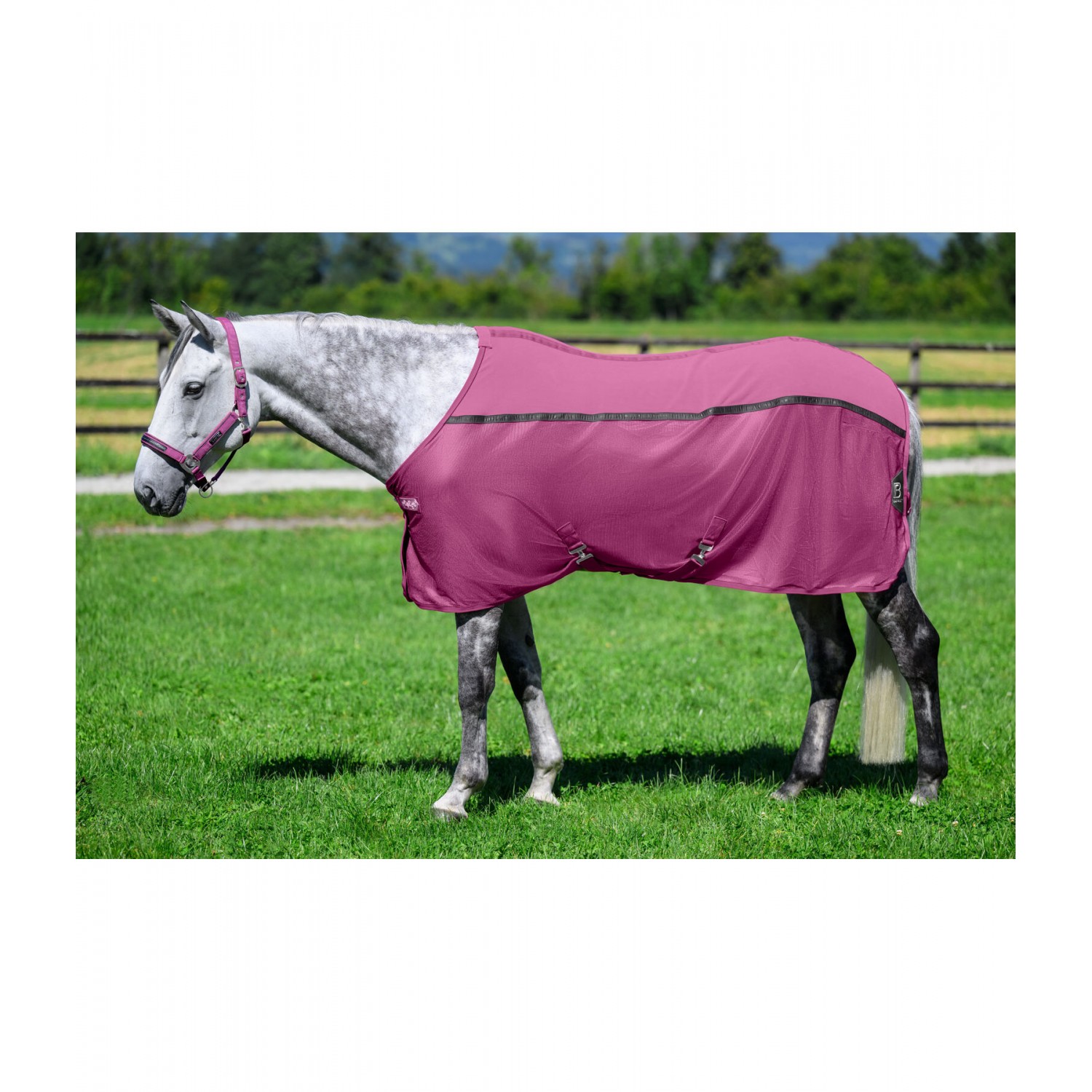 Попона, сочетающая в себе легкий флис, защищающий от сквозняков в области чувствительного позвоночника, и дышащую сетку по бокам. Слегка согревающий флис защищает мышцы спины и позволяет лошади медленно и мягко охлаждаться, даже при сквозняках. Также идеально подходит в качестве дорожной попоны или для использования на соревнованиях. Перекрещивающиеся ремни отстегиваются с обеих сторон. Имеет простую Т-образную застежку на груди и мягкую флисовую подкладку в области холки. Спинка отделана контрастным логотипом коллекции. 100% полиэстер.