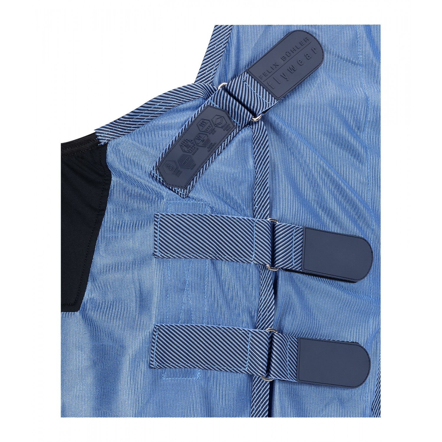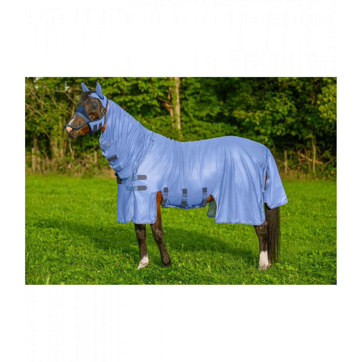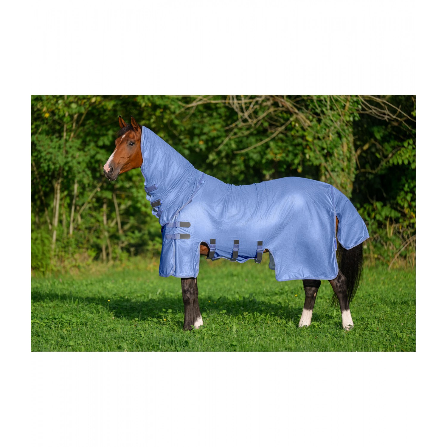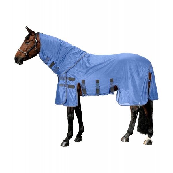 Стильная попона-накидка с капором, изготовленная из легкого, дышащего сетчатого материала, со спортивными логотипами и элегантной полосатой отделкой. Регулируемый клапан на животе, увеличенный клапан на хвосте и регулируемый ремень для хвоста. Для дополнительной безопасности эта попона имеет инновационную боковую застежку на груди с застежкой-липучкой. Это минимизирует риск зацепиться за такие предметы, как кормушки для сена или ограждения загона. Клапан на животе также закрывается на застежку-липучку, поэтому попона не имеет карабинов или Т-образных крючков, что еще больше снижает вес и минимизирует риск зацепления. Гладкая подкладка защищает гриву, плечи и основание хвоста от натирания и ломкости шерсти. 100% полиэстер.