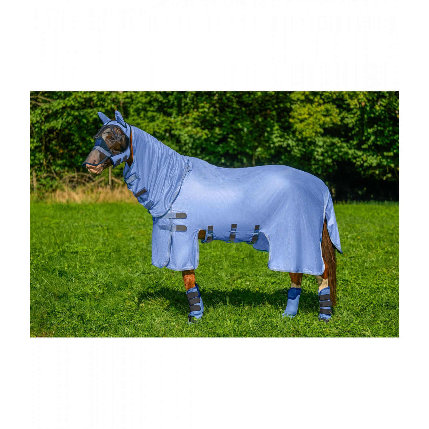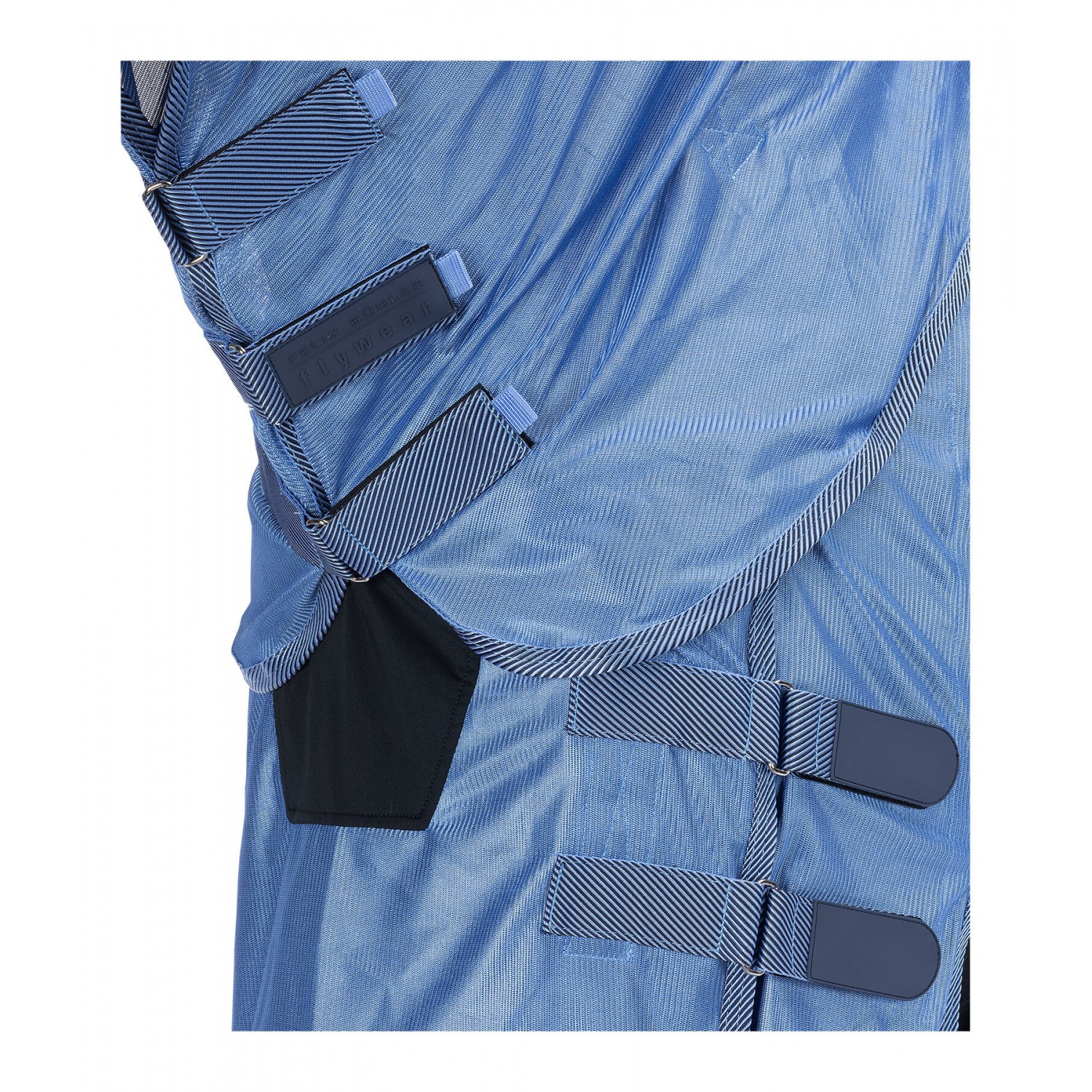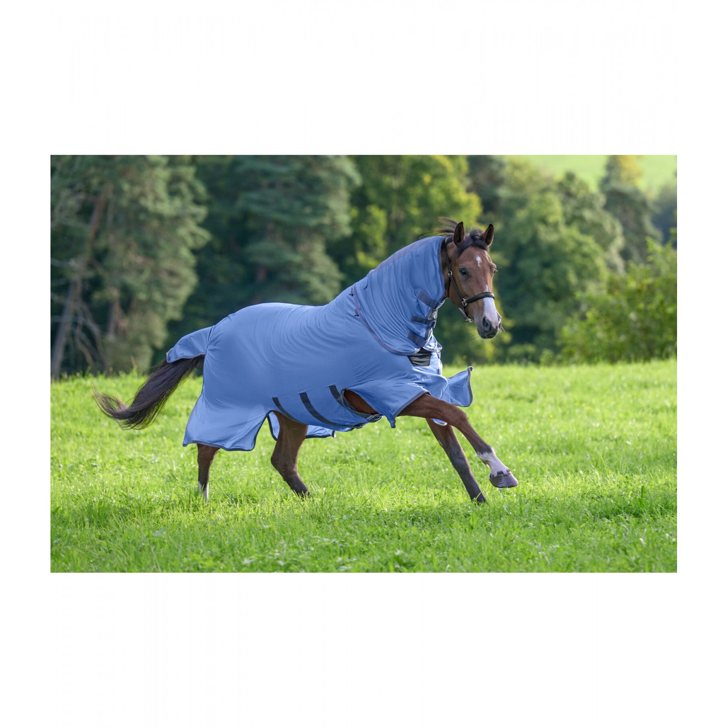 Стильная попона-накидка с капором, изготовленная из легкого, дышащего сетчатого материала, со спортивными логотипами и элегантной полосатой отделкой. Регулируемый клапан на животе, увеличенный клапан на хвосте и регулируемый ремень для хвоста. Для дополнительной безопасности эта попона имеет инновационную боковую застежку на груди с застежкой-липучкой. Это минимизирует риск зацепиться за такие предметы, как кормушки для сена или ограждения загона. Клапан на животе также закрывается на застежку-липучку, поэтому попона не имеет карабинов или Т-образных крючков, что еще больше снижает вес и минимизирует риск зацепления. Гладкая подкладка защищает гриву, плечи и основание хвоста от натирания и ломкости шерсти. 100% полиэстер.