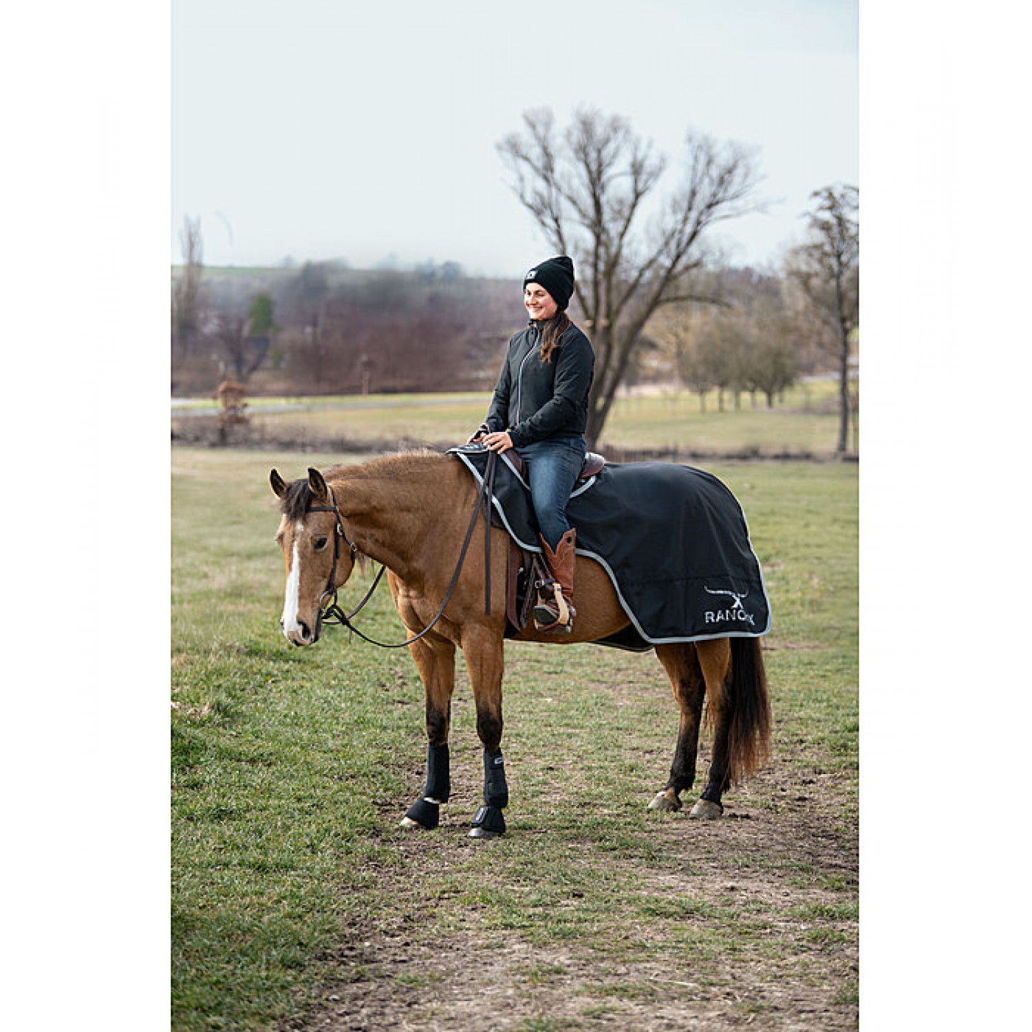 Водонепроницаемая и ветрозащитная полупопона для верховой езды из прочного материала рипстоп со светоотражающей окантовкой и светоотражающим логотипом. Вырез под вестерн-седло. Дышащая ткань. Широкая застежка-липучка на холке для удобства крепления. В комплект входят регулируемый хвостовой ремень и подхвостник. 100% полиэстер.