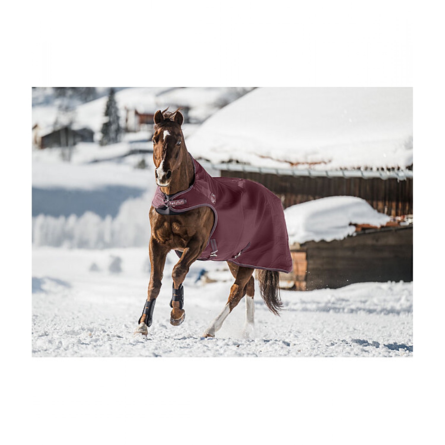 Высокофункциональная и особо прочная на разрыв накидка с высоким воротом, изготовленная из нейлона с очень высокой водонепроницаемостью и очень хорошей воздухопроницаемостью. По сравнению с полиэстером нейлон намного мягче и шелковистее, а также имеет блестящий блеск. В то же время нейлон во много раз более растяжим, чем полиэстер, что обеспечивает лучшую устойчивость к разрывам. Растягивающиеся вставки из эластичного, водоотталкивающего материала softshell в области плеч/шеи и просторный вырез на плечах обеспечивают оптимальную свободу движений, гарантируют исключительную посадку и предотвращают появление классических нежелательных точек давления. Нагрудная застежка дополнительно дополнена мягкой вставкой анатомической формы из хлоропренового каучука. Внутренняя подкладка на высоком воротнике для дополнительной минимизации давления в области холки. Гладкая, приятная на ощупь внутренняя подкладка. Регулируемые перекрестные ремни и устройство для дополнительного крепления ножных ремней. Регулируемый по длине хвостовой ремень и задний клапан со светоотражающими полосами и светоотражающей окантовкой по всему периметру. Внешний материал 100% нейлон, подкладка и наполнитель 100% полиэстер.