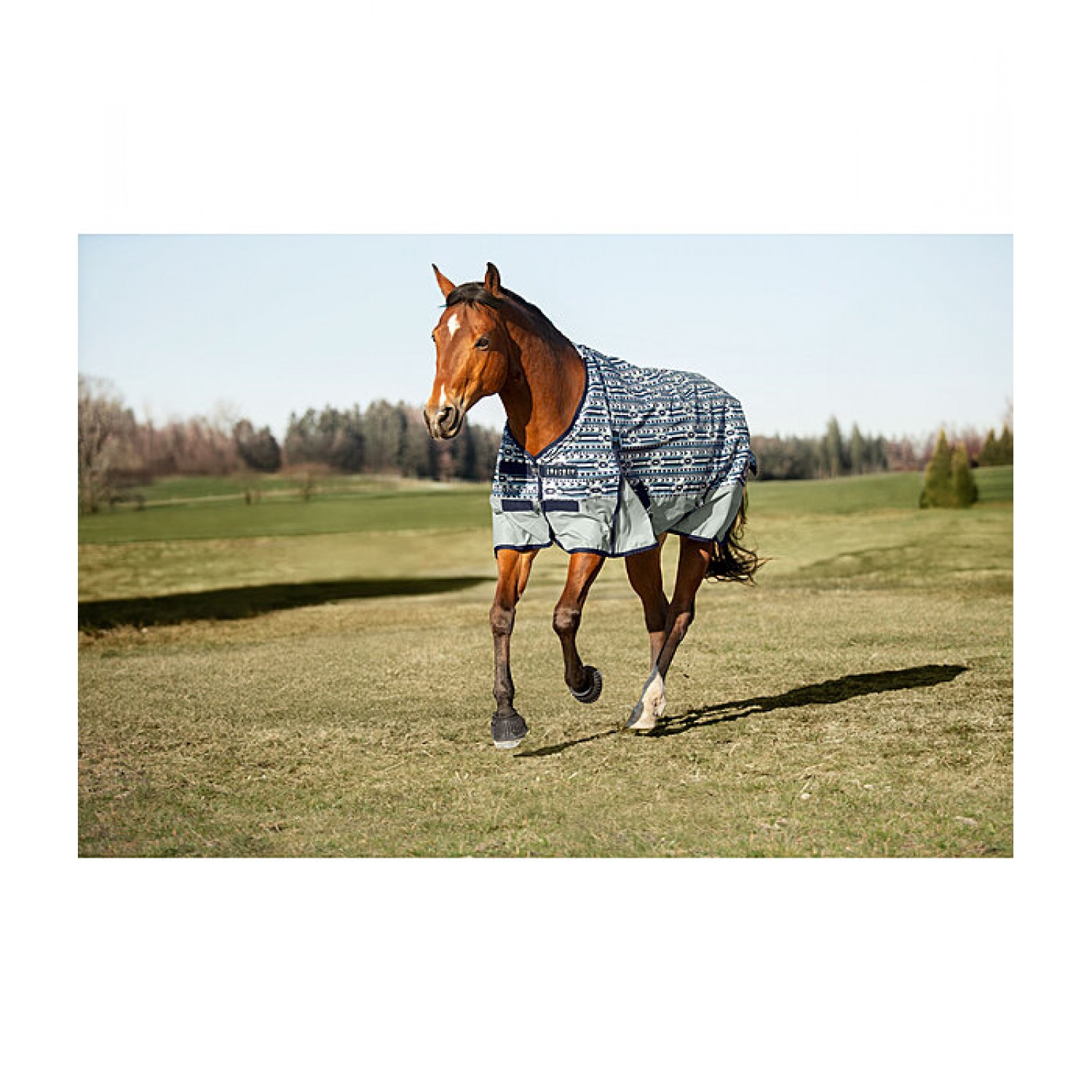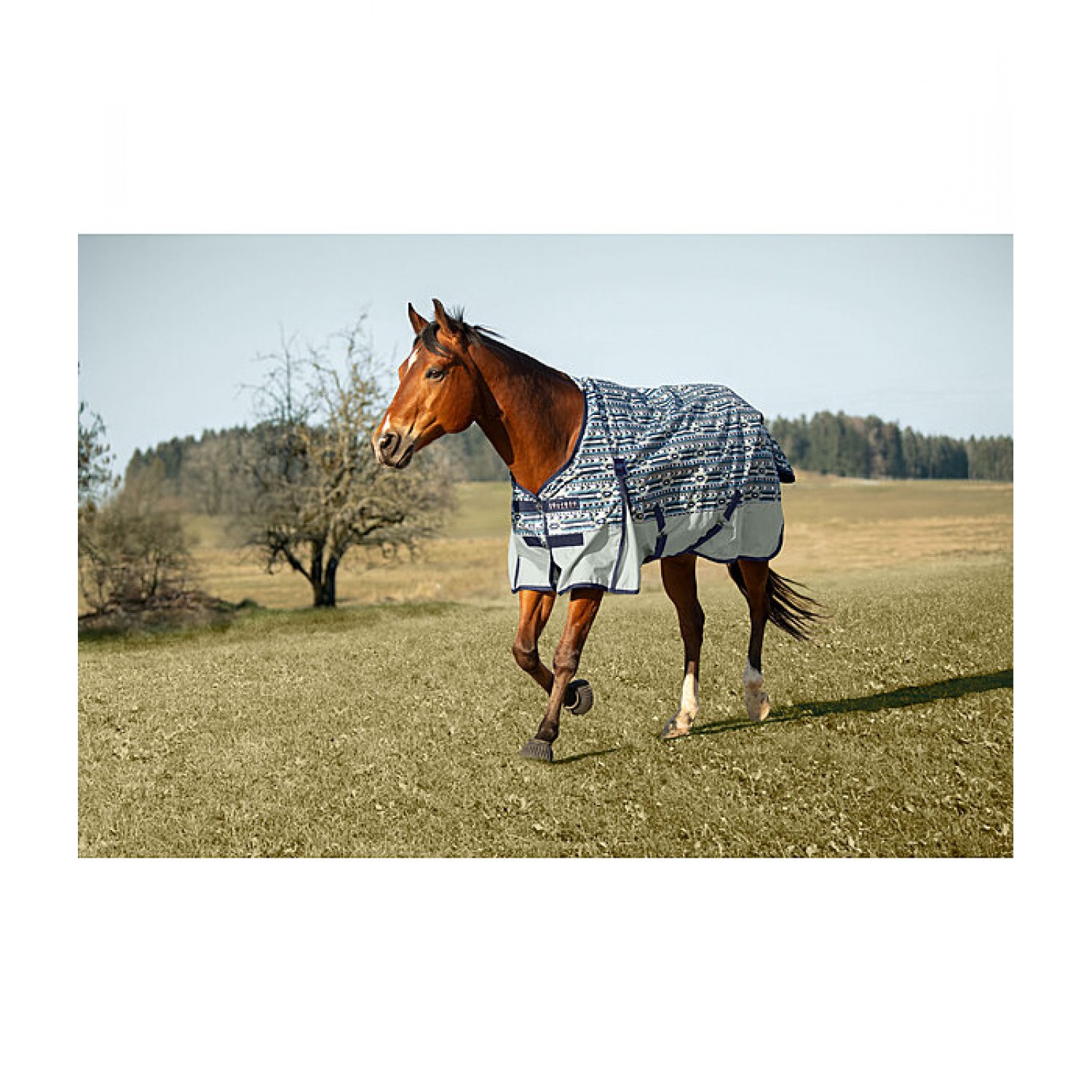 Дождевая попона без наполнителя для вестерн лошадей. Водонепроницаемый и дышащий материал. Со складкой для оптимальной свободы движений, застежкой на груди на двойной Т-образный крючок, регулируемыми поперечными ремнями и клапаном сзади. В комплект входит устройство для крепления ножных ремней и регулируемый по длине хвостовой ремень. Гладкая, приятная для шерсти подкладка. 100% полиэстер.