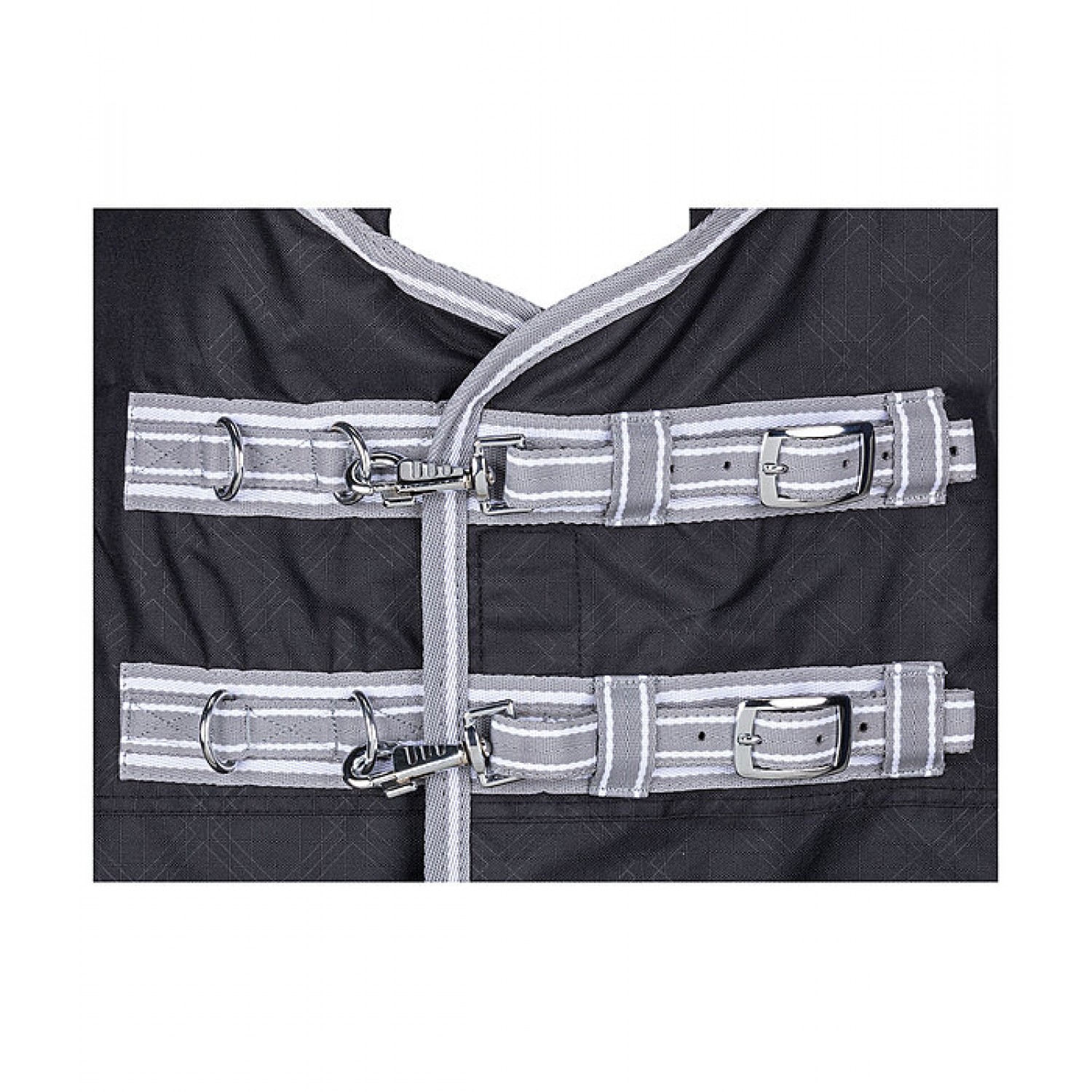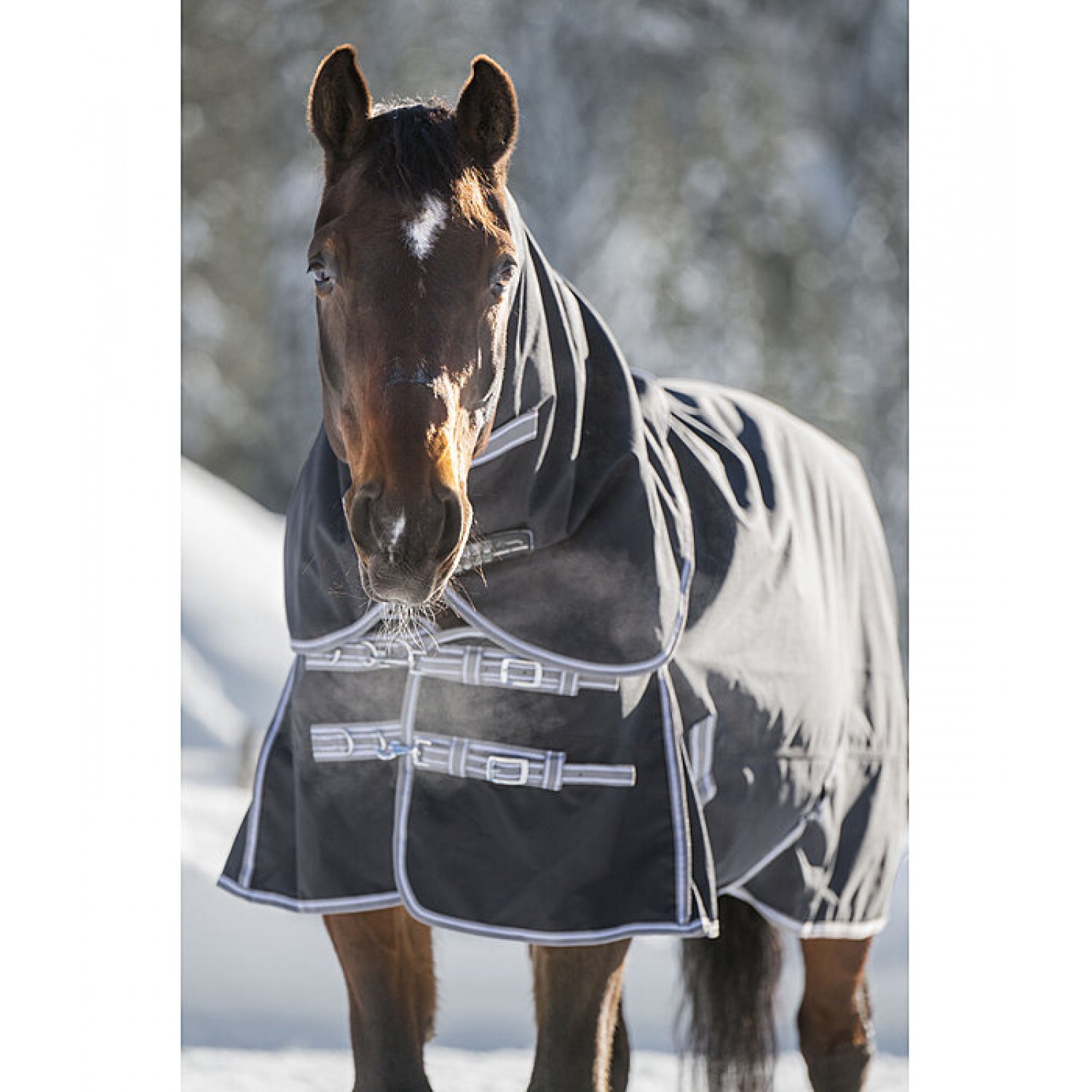 Многофункциональная попона, с практичной системой комбинации подкладок, из проверенного, дышащего и водонепроницаемого материала рипстоп. Попону можно легко соединить с подходящими подпопонниками THERMO MASTER (422483 и 422484, 422482) и капором (422481) благодаря фиксирующим проушинам и застежкам-липучкам. В зависимости от наружной температуры степень утепления можно индивидуально настроить в мгновение ока. Мягкие плечевые накладки обеспечивают оптимальное распределение давления при опускании головы. Гладкая внутренняя подкладка. Широкая складка для оптимальной свободы движений. Двойная регулируемая передняя застежка с D-образными кольцами и карабинами, а также дополнительные липучки и регулируемые поперечные ремни. 100% полиэстер.