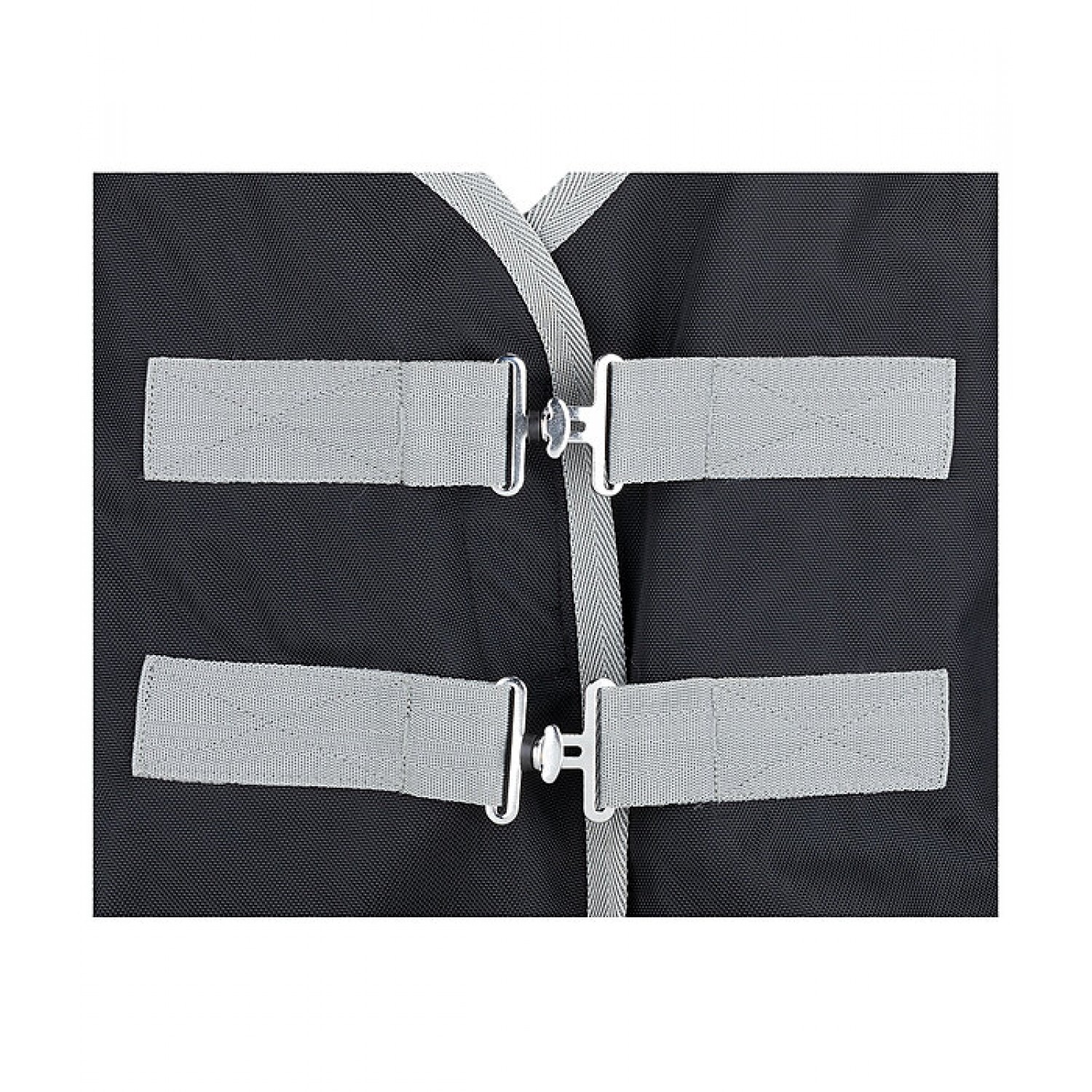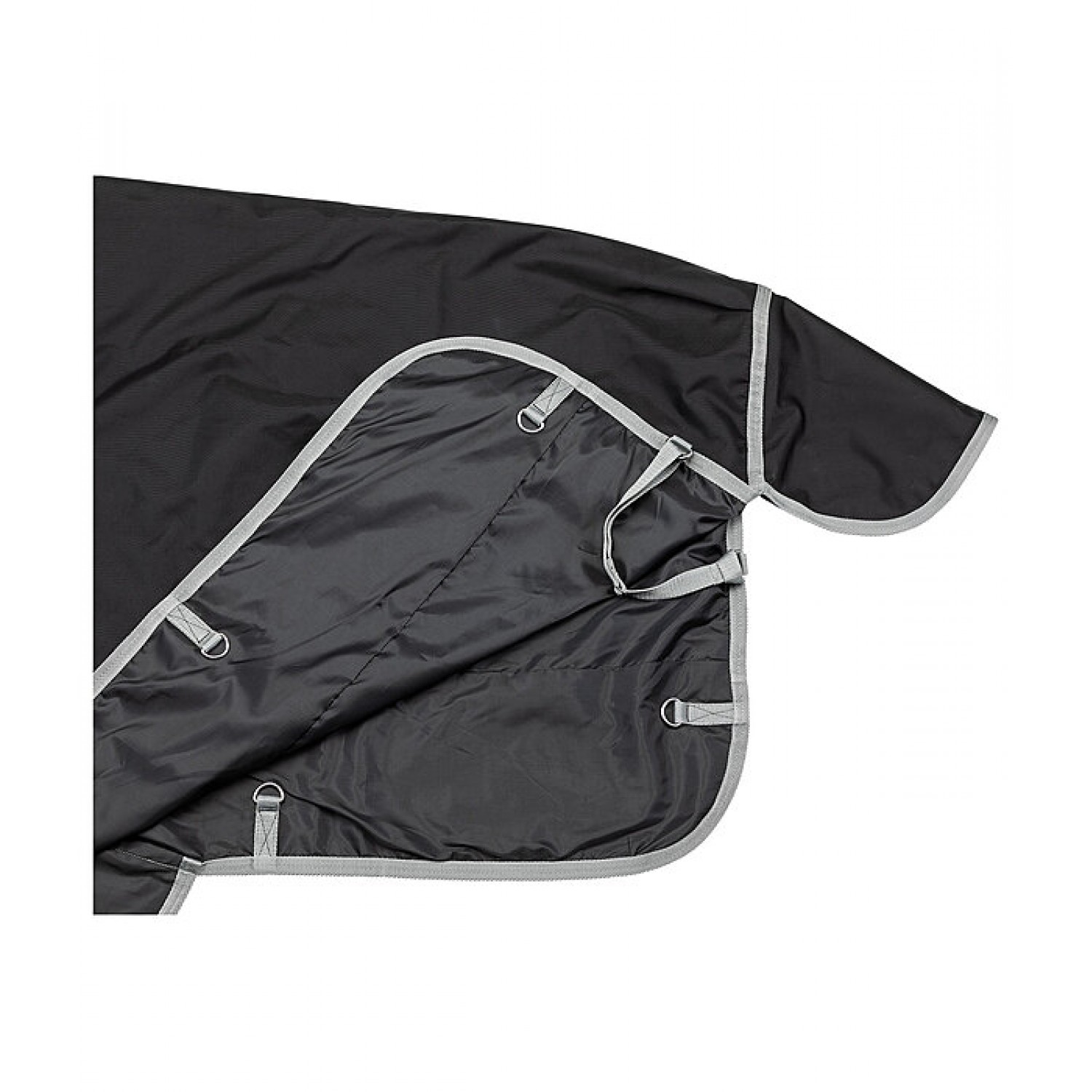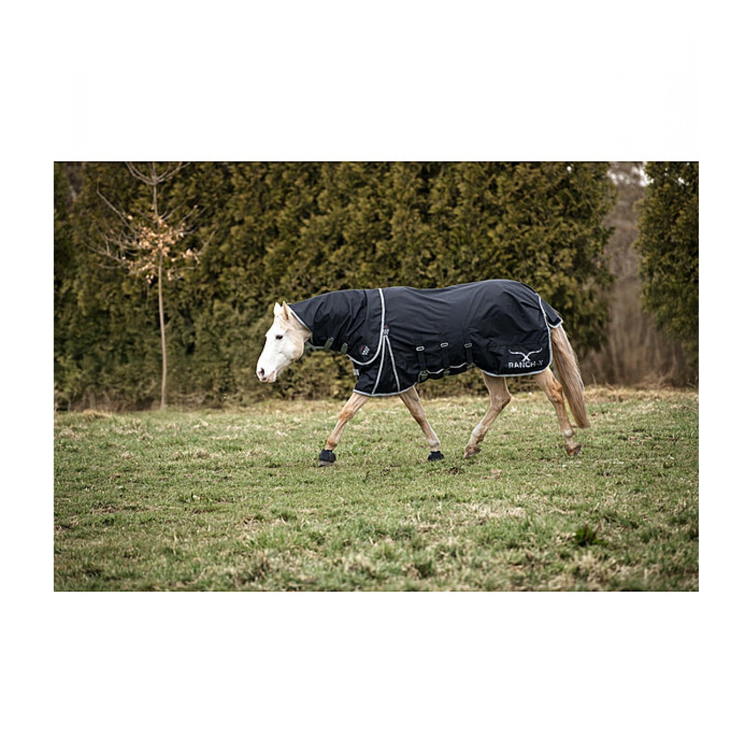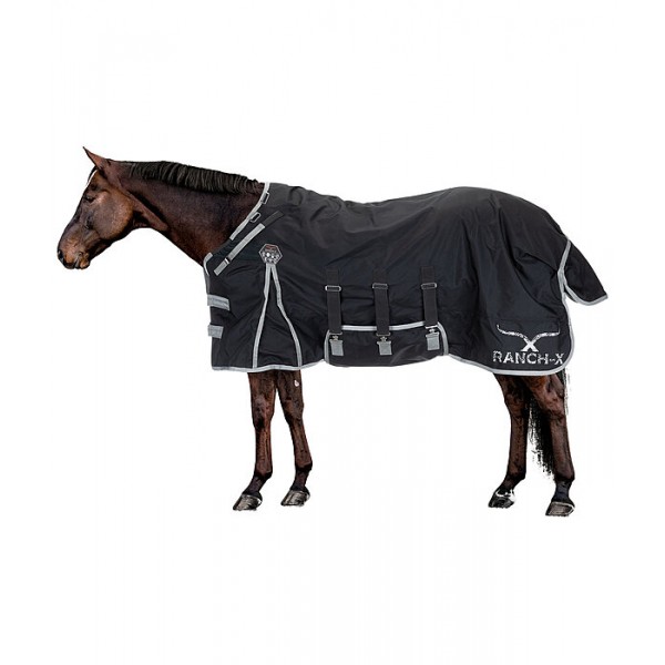 Высокофункциональная, исключительно прочная на разрыв нейлоновая попона с инновационным тефлоновым покрытием, клапаном на животе для дополнительной защиты от грязи и регулируемым вырезом на шее. Внешний материал обладает высокой водонепроницаемостью, ветрозащитой и воздухопроницаемостью. Рельефные эластичные вставки в области плеч и шеи из эластичного, водоотталкивающего материала softshell и широкие складки обеспечивают оптимальную свободу движений, гарантируют исключительную посадку и предотвращают появление нежелательных точек давления. Большая внутренняя подкладка дополнительно снижает давление в области холки. Вырез на шее регулируется с помощью боковых застежек-липучек. Имеет две Т-образные застежки спереди и дополнительную застежку-липучку на груди. Регулируемый клапан на животе имеет эластичные вставки. Включает регулируемый хвостовой ремень и крупный принт с логотипом. Без подкладки. Гладкая, не раздражающая шерсть подкладка. Специально разработана для оптимальной посадки на лошадях породы вестерн. С D-образными кольцами на вырезе горловины для соединения с подходящим по размеру капором, артикул 183710. Внешний материал: 100% нейлон, подкладка: 100% полиэстер.