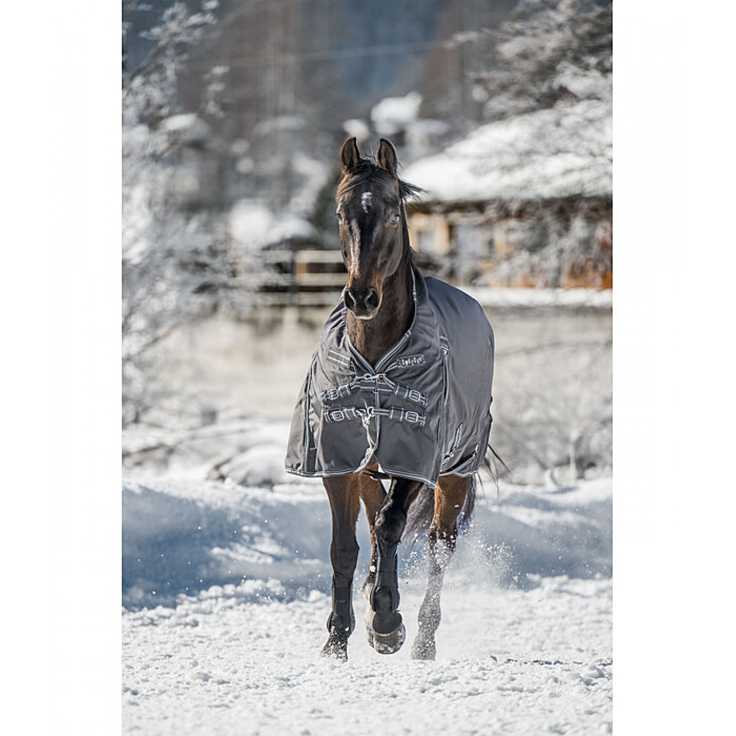 Наш абсолютный бестселлер - теперь обновленный материал с улучшенным внешним материалом для еще большей прочности, долговечности и водонепроницаемости, но с тем же комфортом для вашей лошади, что и раньше! Функциональная и особо прочная на разрыв попона с высоким воротником из нейлона с очень высокой водонепроницаемостью и очень хорошей воздухопроницаемостью. По сравнению с полиэстером нейлон значительно мягче, шелковистее и имеет блеск. В то же время нейлон во много раз более эластичен, чем полиэстер, что обеспечивает повышенную устойчивость к разрыву. Оснащена теплой набивкой 300 г. Эластичные вставки в области плеч и шеи из водоотталкивающего материала Softshell и большие складки обеспечивают оптимальную свободу движений, гарантируют идеальную посадку и предотвращают классические нежелательные точки давления. Большая внутренняя набивка в области шеи дополнительно минимизирует давление в области холки. Регулируемая по ширине тройная балансировочная передняя застежка с 2 карабинами и 2 кольцами. При необходимости карабины можно легко заменить. Гладкая, приятная для шерсти подкладка. Регулируемые поперечные ремни и устройство для дополнительного крепления ножных ремней. Регулируемый по длине ремень на хвосте и клапан на хвосте со светоотражающими полосами, а также светоотражающей окантовкой по всему периметру. Прекрасно сочетается расширителем, арт. 422664. Внешний материал 100 % нейлон, подкладка и наполнитель 100 % полиэстер.