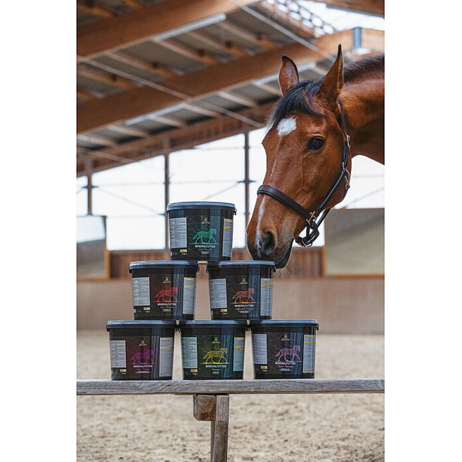 Оптимальное снабжение лошадей всеми важными и необходимыми витаминами, минералами и микроэлементами для тренировок. Из-за более высокой нагрузки на мышцы и потери потоотделения во время тренировки необходимое количество минеральных кормов выше, чем обычно.Поэтому Original Landmühle Mineralfutter Sport Premium содержит важные ингредиенты, такие как витамин Е, селен, магний и биотин. Витамин Е вместе с селеном положительно влияет на метаболизм мышц. Аминокислоты, такие как лизин и метионин, способствовуют наращиванию мышечной массы. Биотин способствует росту копыт и в то же время обеспечивает блестящую и прочную шерсть. Минеральный корм также содержит важные электролиты, так что водный баланс лошади может быть снова сбалансирован после тренировки. Поэтому он идеально подходит для спортивных лошадей с легкой и средней нагрузкой. В основе оригинального минерального корма Landmühle Sport Premiums лежит луговая зеленая мука, поэтому оно не содержит зерна и патоки. Состав: шрот луговый, фосфат дикальция, карбонат кальция, льняное семя, рожковое дерево, хлорид натрия, оксид магния, анис, фенхель, соцветия сена, листья мяты перечной. Добавки на кг: витамин A (3a672a) 500 000 МЕ; Витамин D3 (3a671) 50 000 МЕ; Витамин Е 150 000 мг; Витамин B1 в виде мононитрата тиамина 450 мг; Витамин В2 в виде рибофлавина 215 мг; Витамин B6 в виде гидрохлорида пиридоксина 215 мг; Витамин B12 в виде цианокобаламина 9500 мкг; Биотин 25000 мкг; Фолиевая кислота 625 мг; Ниацин 625 мг; D-пантотенат кальция 450 мг; Холина хлорид 5000 мг; Железо (3b103) в виде моногидрата сульфата железа (II) 1250 мг; Йод в виде йодида калия 20 мг; Гранулы карбоната Cpbalt (II), покрытые кобальтом (3b304) 10 мг; Марганец (3b503) моногидрат сульфата марганца (II) 5000 мг; Цинк в виде оксида цинка 3b603 5000 мг; Цинк как 3b607 глицин хелатный гидрат цинка 5000 мг; Селен в виде 3b801 селенита натрия 10 мг, селен в органической форме в виде селеновых дрожжей 3b8.12 из Saccharomyces cerevisiae CNCM I-3399 (инактивированный) 10 мг; Моногидрохлорид L-лизина 18000 мг, L-метионин 12500 мг; L-треонин 15000 мг. Рекомендации по применению: крупные лошади (масса тела 600 кг) 80 г в день, маленькие лошади 40 г в день. Лекарственная форма: гранулы. Вес 3 кг.