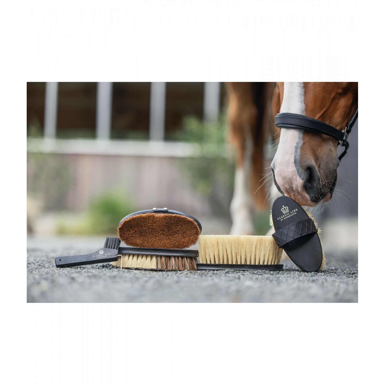 Благодаря высокой водопоглощающей способности щетка подходит для чистки мокрых и потных лошадей. Длина ворса 4,5 см. 19 х 8,5 х 6 см.