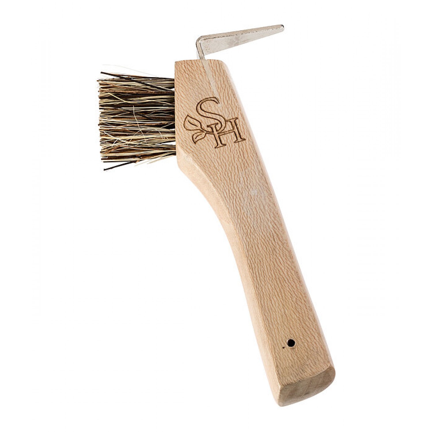Копытный крючок с щетиной из кокосового волокна. С деревянной ручкой. 15,5 х 8 см.
