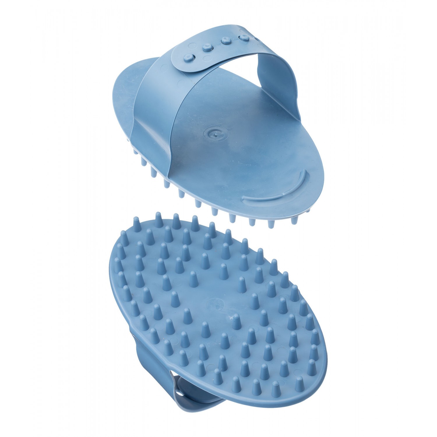 Очень гибкая массажная щетка из мягкого материала. Идеально подходит для массажа лошадей и при смене шерсти. Круглый край для пальца обеспечивает оптимальное сцепление при очистке и уменьшает признаки усталости. С регулируемым ремешком. 16 х 9,5 см Сделано в Германии