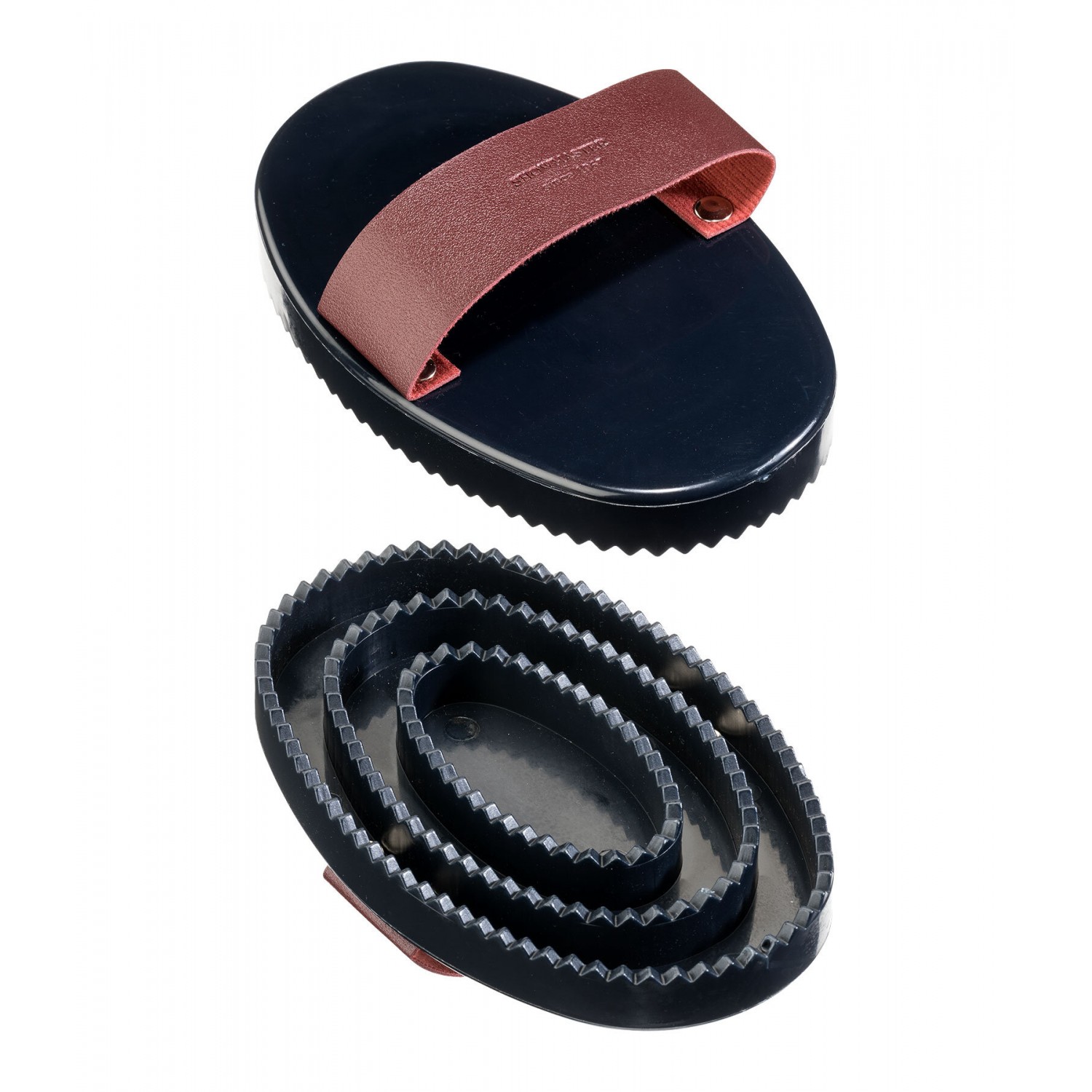 Пластиковая скребница с модным узором. Размеры: 16 х 10 см. Идеально подходит для другого инвентаря серии "Maya".
