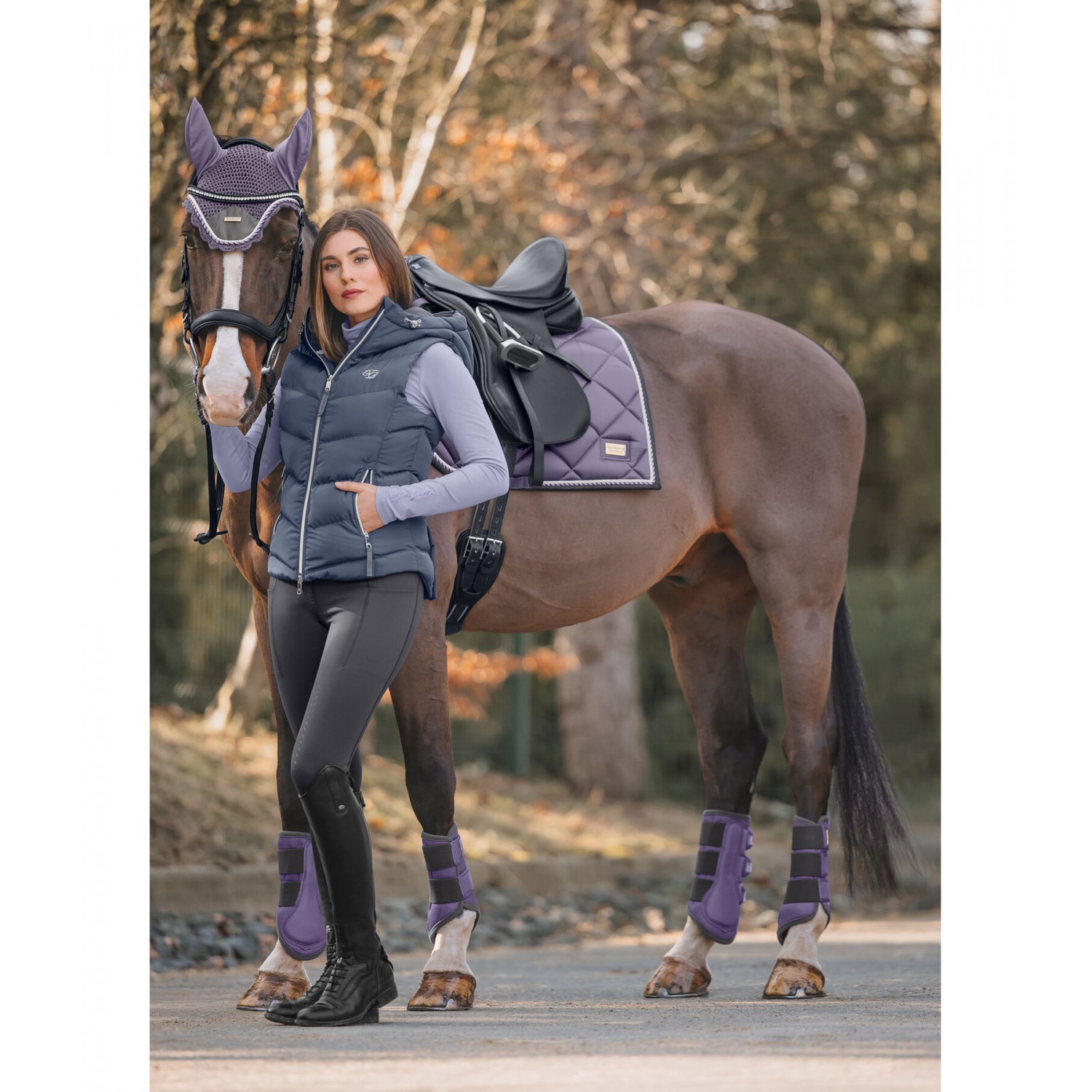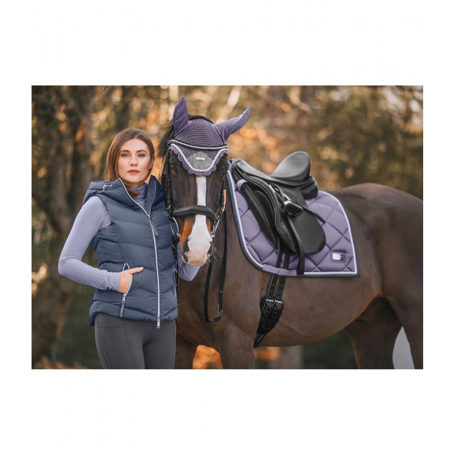 Шикарный вальтрап с эффектной металлической пластиной с логотипом из сверкающего металла. Шелковистый, мерцающий внешний материал и соответствующие декоративные шнуры. Нижняя часть выполнена из влагопоглощающего и дышащего сетчатого материала. 100% полиэстер.