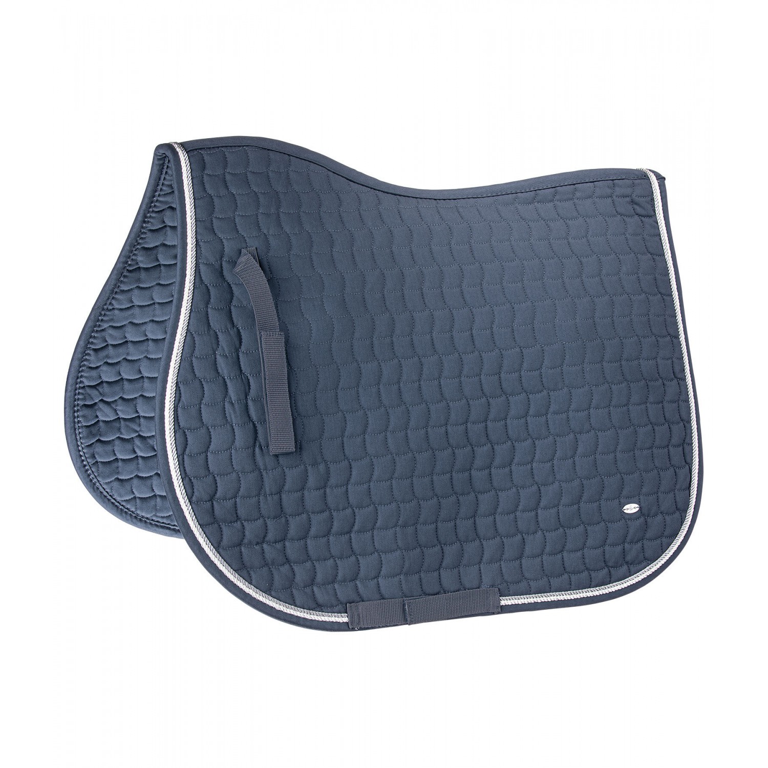 Шикарный вальтрап из хлопка с металлической пластиной серебристого цвета с тонкой гравировкой логотипа. Обрамлен двойными блестящими декоративными шнурками. Внутри из приятного для кожи и впитывающего влагу хлопка. Верх и низ 100% хлопок, наполнитель 100% полиэстер. P: длина по спине 54 см, высота: 45 см DR: длина по спине 61 см, высота: 54 см VS: длина по спине 61 см, высота: 51 см