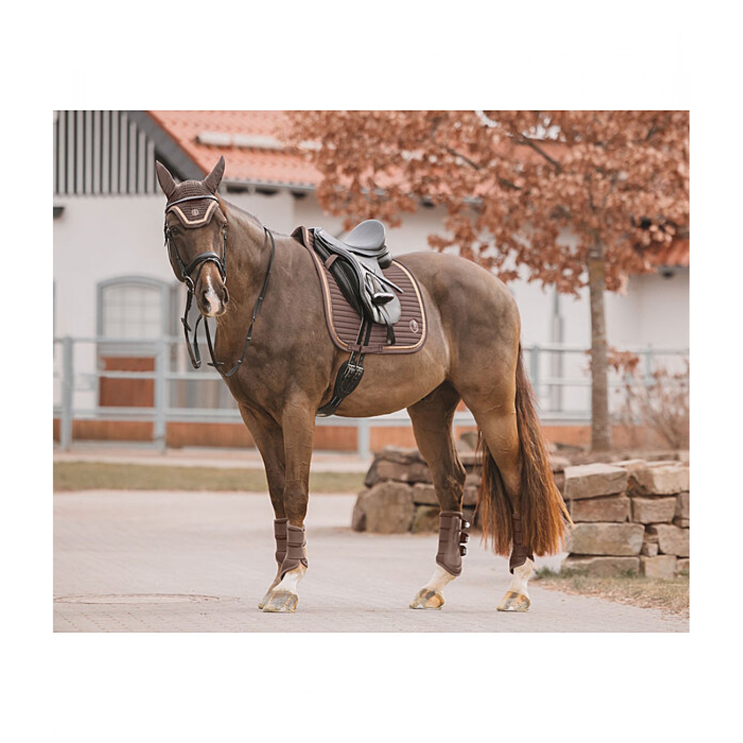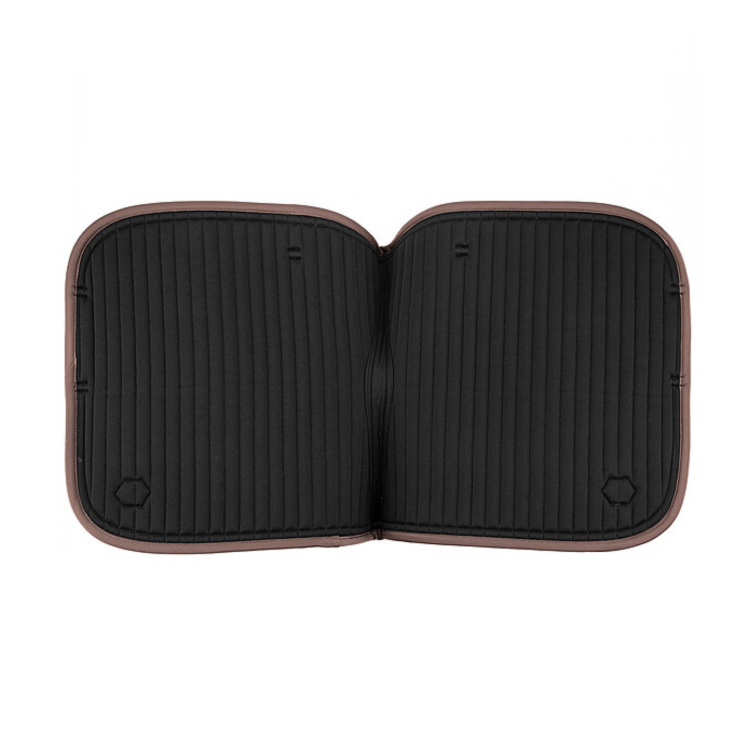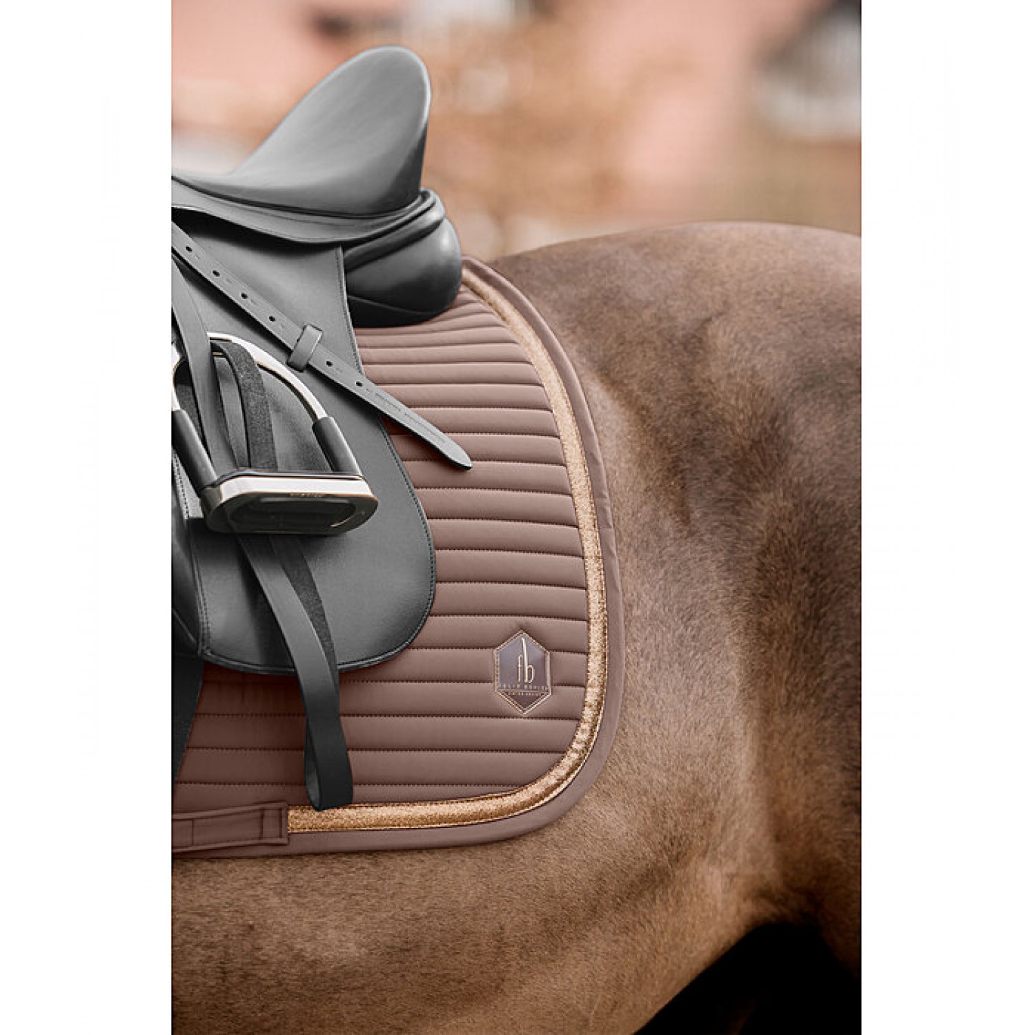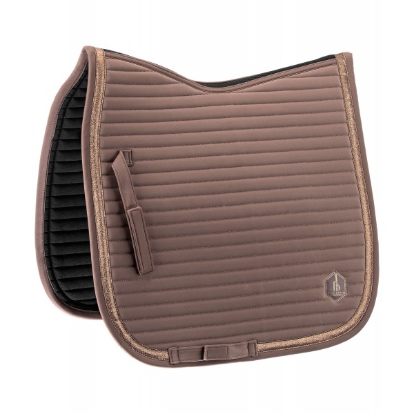Элегантный спортивный вальтрап с отделкой из сверкающих блесток в тон цвета и соответствующим логотипом. Сетчатая вставка с высокой воздухопроницаемостью вдоль спинки обеспечивает оптимальную вентиляцию. Внешний материал – матовый, мягкий и грязеотталкивающий. Вальтрап имеет спортивную продольную стежку, а также петли для седла и подпруги с практичными застежками-липучками. Изнаночная сторона выполнена из влагоотводящей и воздухопроницаемой сетчатой ткани. 100% полиэстер.Размеры: P: длина 53 см, высота 44 см. DR: длина 58 см, высота 52 см VS: длина 60 см, высота 50 см.