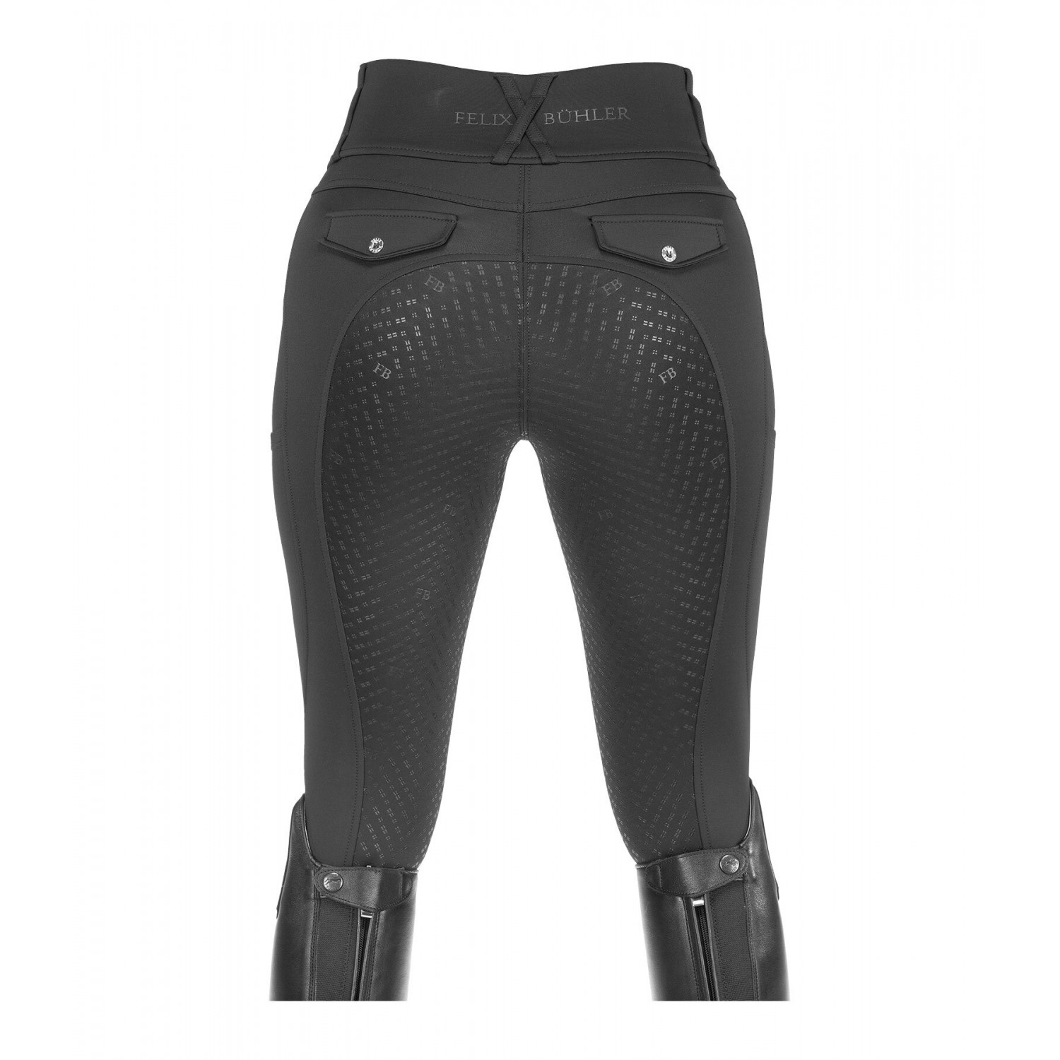 Спортивные компрессионные леггинсы с противоскользящим покрытием, изготовленные из облегающего материала для дополнительной поддержки и создания привлекательного силуэта. Дышащие, быстросохнущие, с защитой от солнца UPF 50+. Полностью силиконовая лея. Широкий эластичный пояс с петлями для ремня, два боковых кармана для мобильного телефона, два декоративных кармана на пуговицах сзади, бесшовные колени, гибкие манжеты на штанинах. Силиконовые принты Феликс Бюлера. 71% полиамид, 29% эластан.