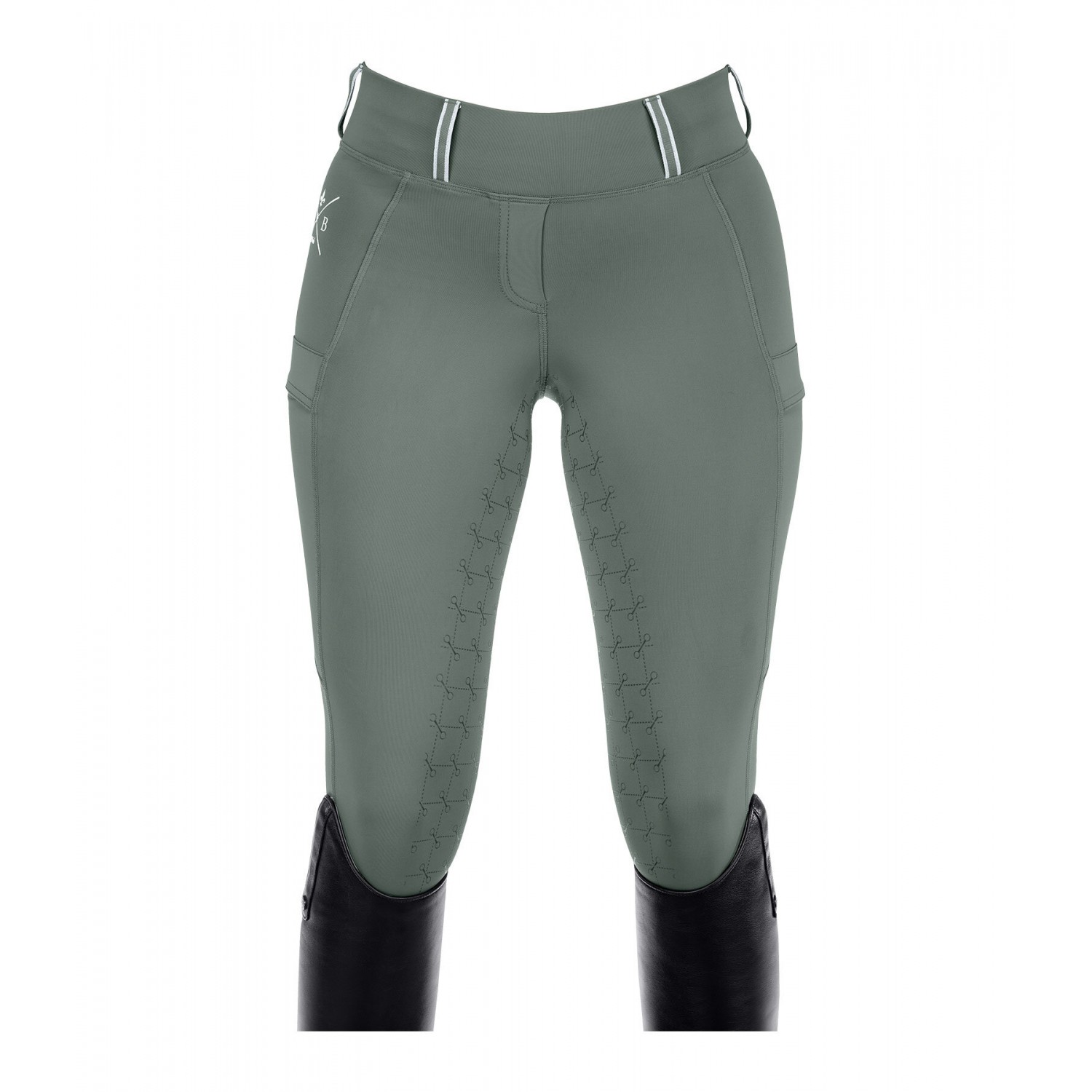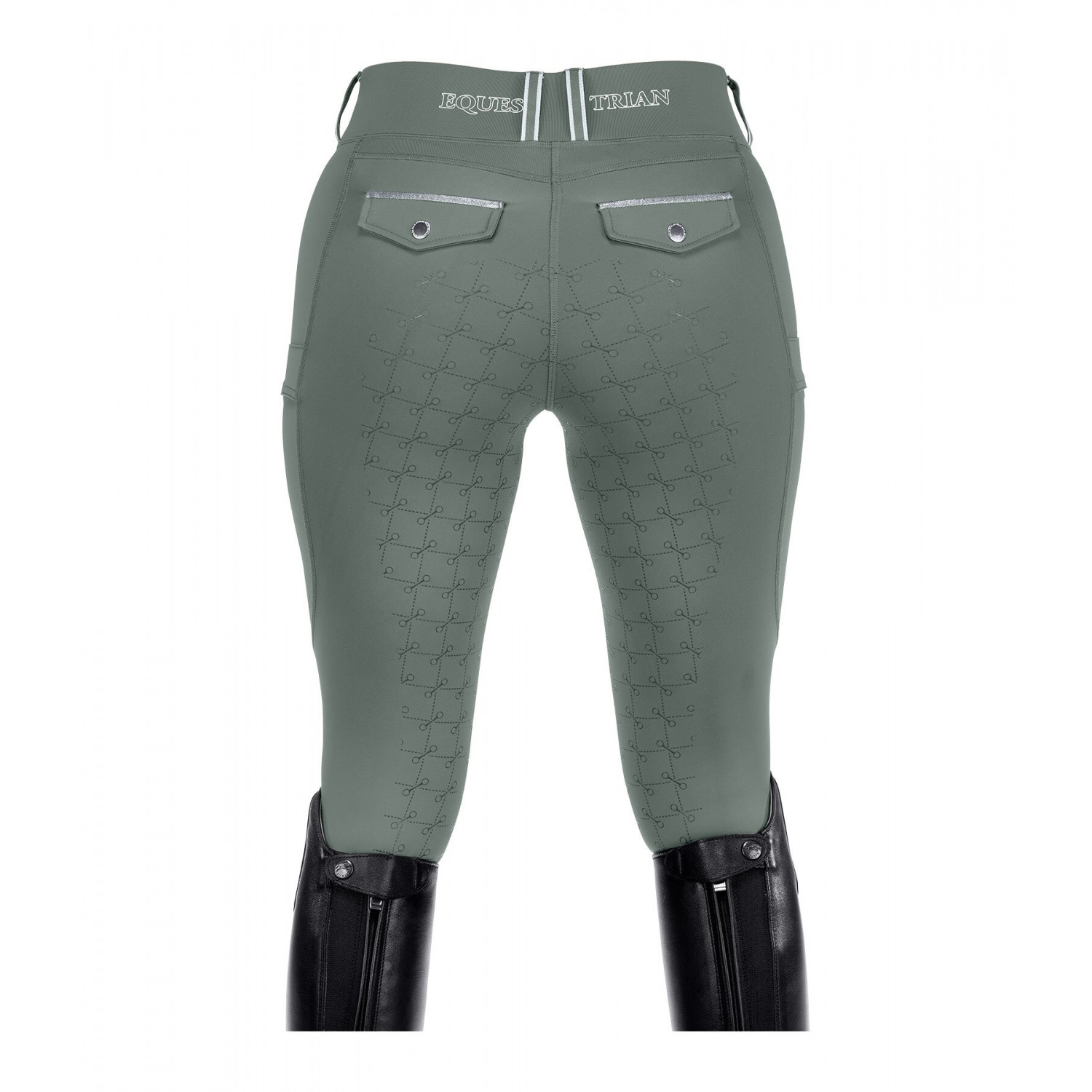 Спортивные леггинсы для верховой езды из высококачественного эластичного материала, растягивающегося в четырех направлениях, с полной леей из силикона. Дышащий и быстросохнущий материал. Широкий пояс со шлевками для ремня с отделкой тесьмой контрастного цвета. 2 боковых кармана для мобильного телефона, без швов на коленях, принты Felix Bühler. Идеальный внешний вид благодаря 2 ложным карманам с блестящей лентой сзади. 85% нейлон, 15% спандекс.