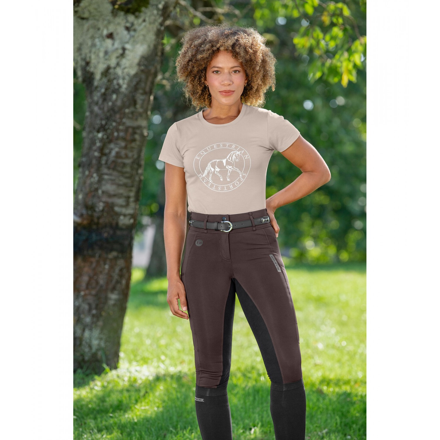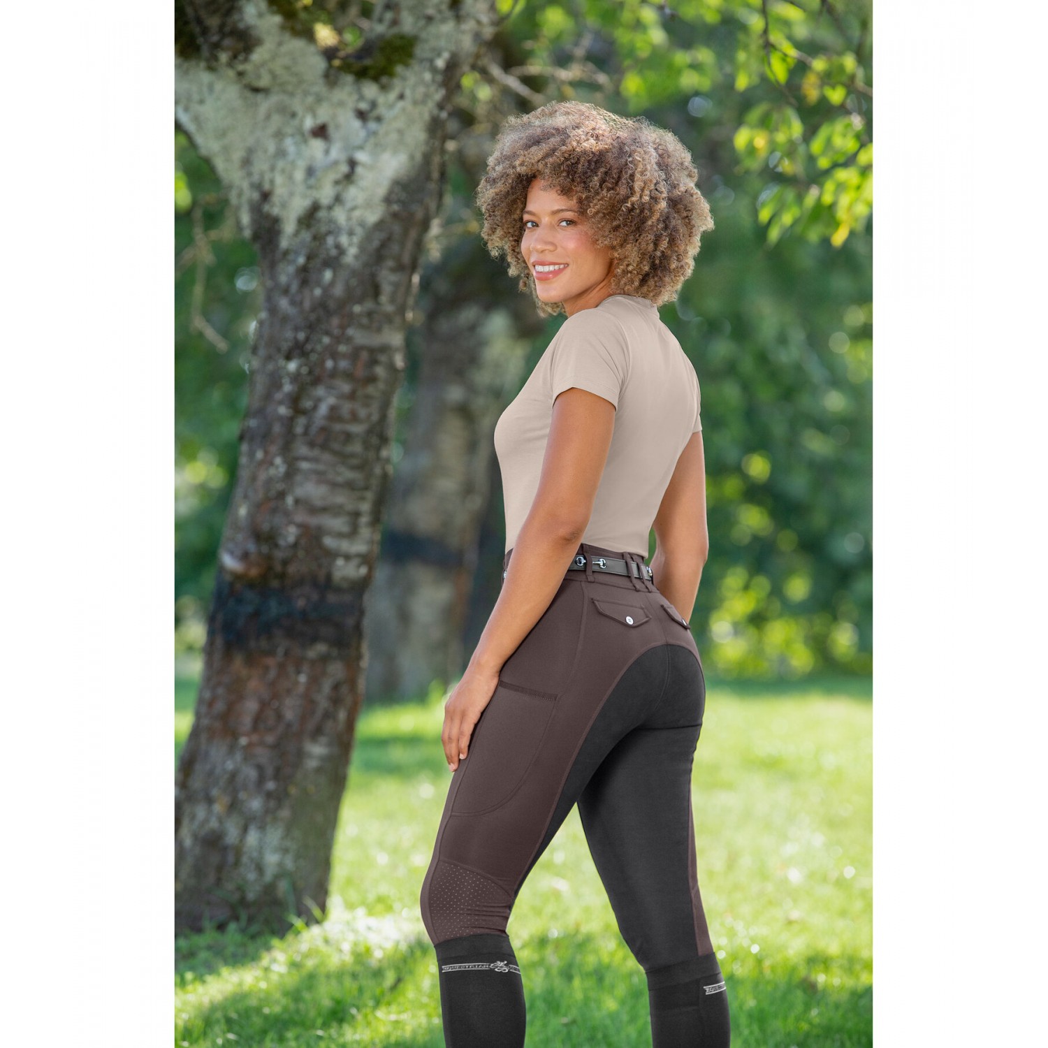Суперкомфортные бриджи для верховой езды с техническими вставками, вырезанными лазером, на штанинах. Эффект подтяжки благодаря высококачественной эластичной ткани, растягивающейся в четырех направлениях. Полная лея из новой, супермягкой ткани Felix Bühler COMFORT TECH SEAT. Удобный пояс с петлями для ремня и двумя пуговицами. Два боковых кармана для мобильного телефона с лазерной перфорацией, два декоративных кармана на пуговицах сзади, едва заметные принты Felix Bühler. Для более свободной посадки закажите на один размер больше. 78% полиэстер, 22% эластан. Лея: 70% полиэстер, 30% полиуретан.