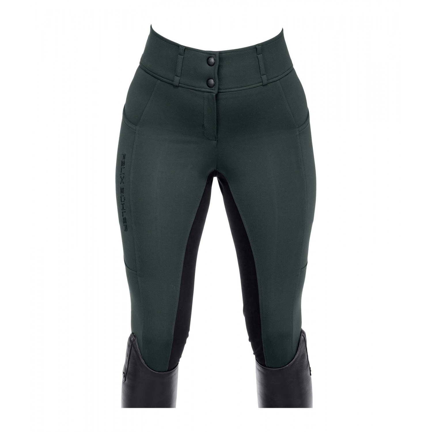 Классические бриджи для верховой езды из эластичной, сверхмягкой ткани, растягивающейся в четырех направлениях. Полная лея из новой, сверхмягкой ткани Felix Bühler COMFORT TECH SEAT. Очень широкий, удобный пояс с двумя пуговицами и петлями для ремня. Один боковой карман для мобильного телефона, один задний карман на молнии, вышивка Felix Bühler, гибкие манжеты для ног. Состав: 68% вискоза, 27% нейлон, 5% эластан; ткань в области ягодиц: 70% полиэстер, 30% полиуретан.