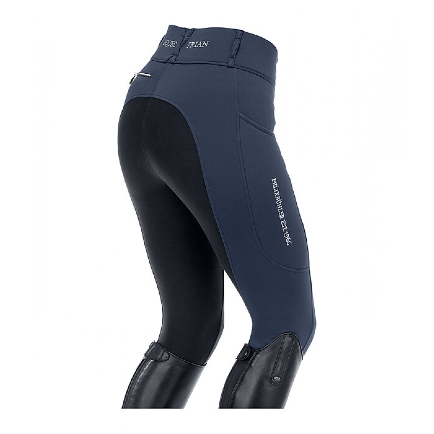 Экологичные! Очень тёплые леггинсы для верховой езды из эластичной, супермягкой ткани, тянущейся в четырёх направлениях. Полная лея из нового супермягкого материала Felix Bühler COMFORT TECH SEAT. Дышащие и быстросохнущие. Мягкая подкладка, вышивка Felix Bühler, широкий пояс со шлёвками для ремня, боковой карман для мобильного телефона, один карман на молнии сзади, без коленных швов. 60% переработанного полиэстера, 33% переработанного полиамида, 7% эластана. Лея: 60% нейлона, 40% полиуретана.