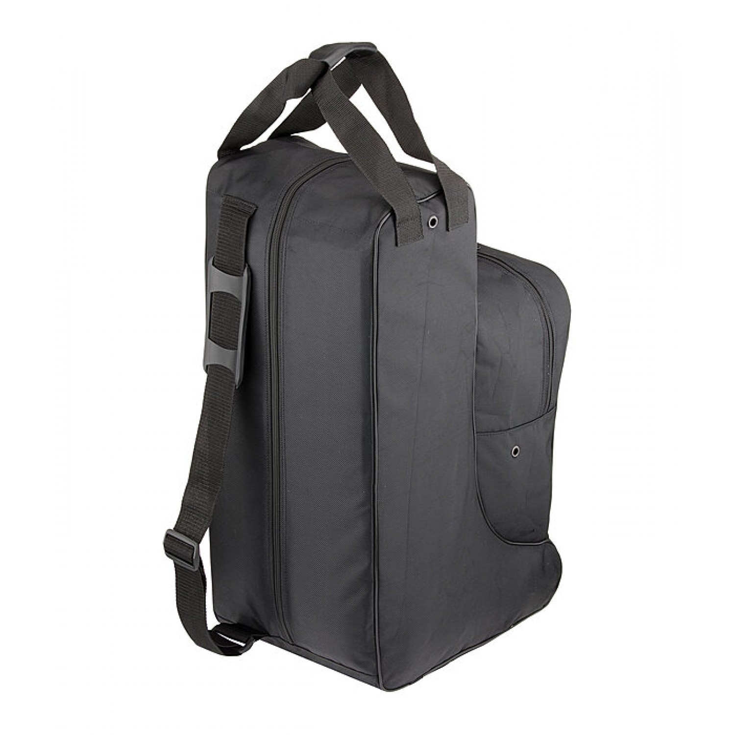 Сумка из прочного нейлона с мягким отделением для шлема. Имеет вентиляционные отверстия, ручку для переноски и регулируемый плечевой ремень. Дно оснащено прорезиненными накладками для защиты от износа. Прочные двусторонние молнии. Размеры: 33 x 60 x 25 см.