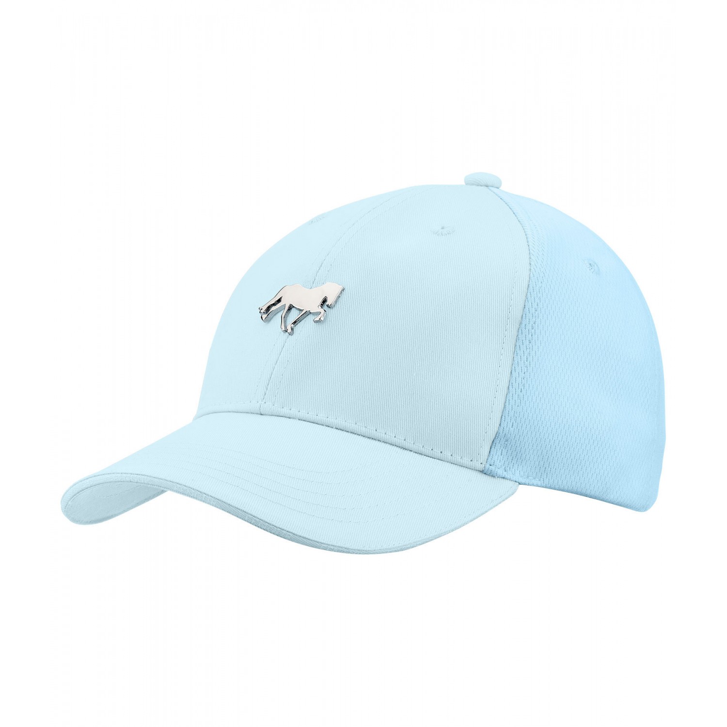Игривая кепка с металлической лошадью спереди и надписью на козырьке. Дышащая сетчатая вставка. 60% хлопок, 40% полиэстер.