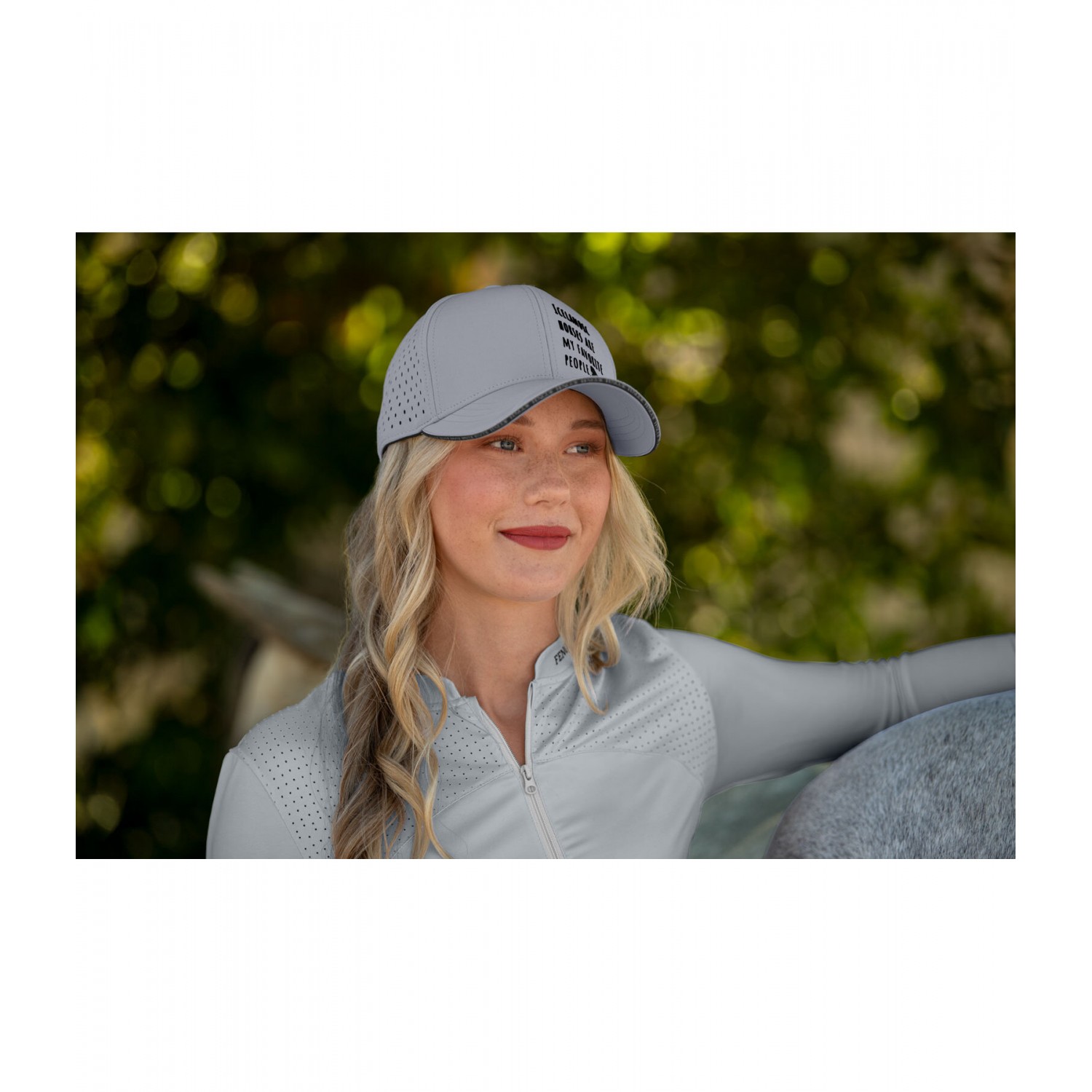 Дышащая кепка с надписью и лазерной перфорацией на задней части. 100% полиэстер.