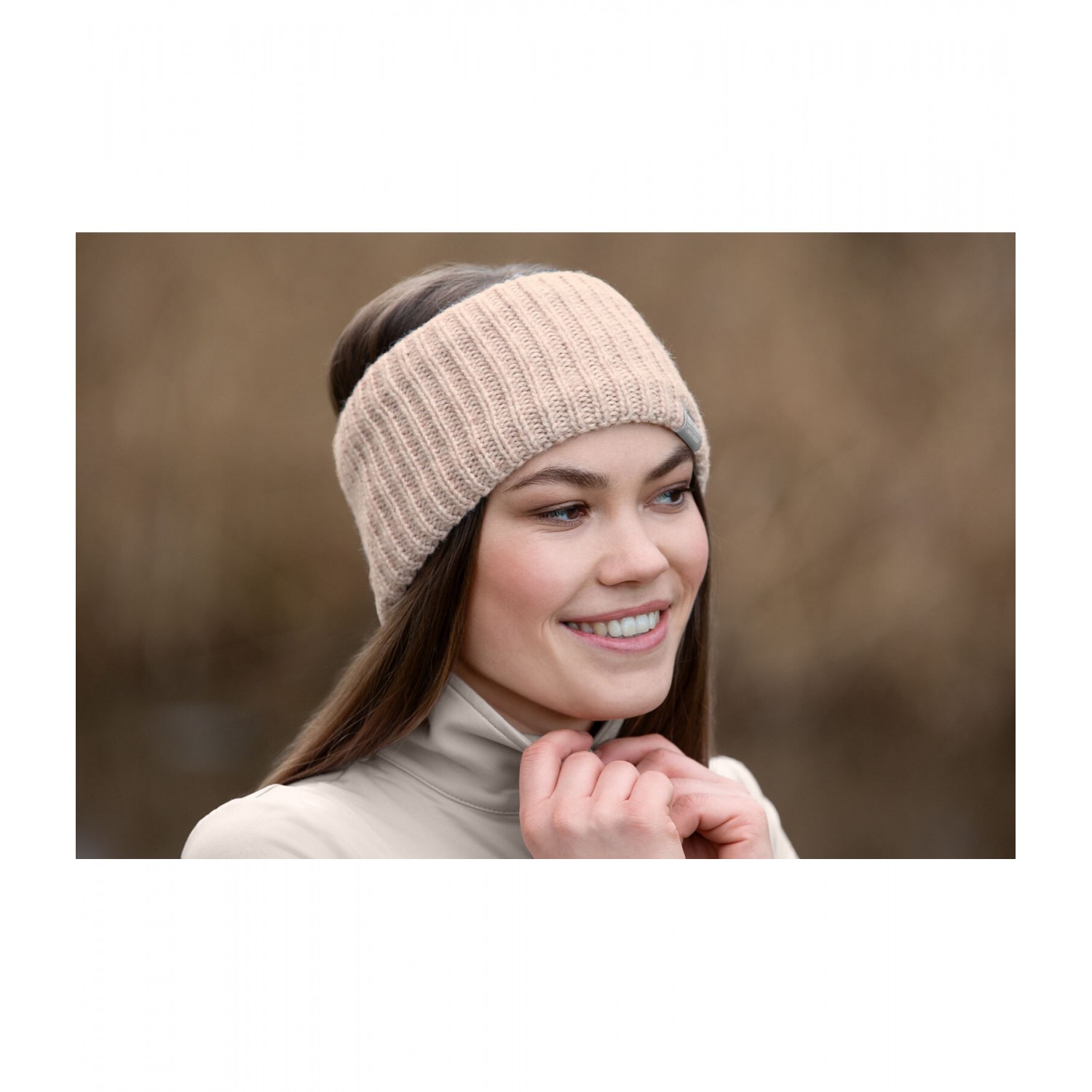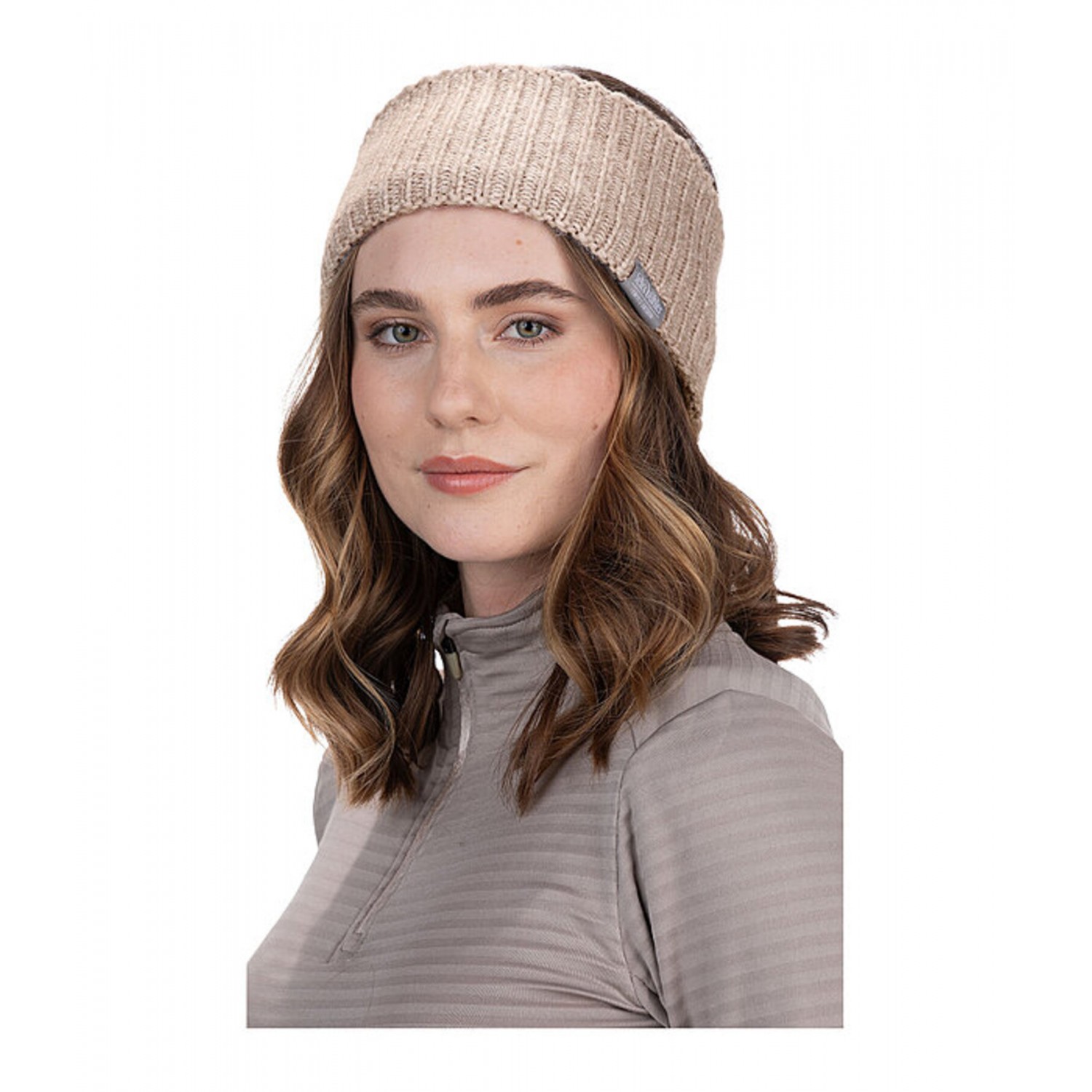 Широкая вязаная повязка на голову с уютной подкладкой из мягкого флиса и с логотипом. 50% полиэстер, 45% вискоза, 5% полиамид.