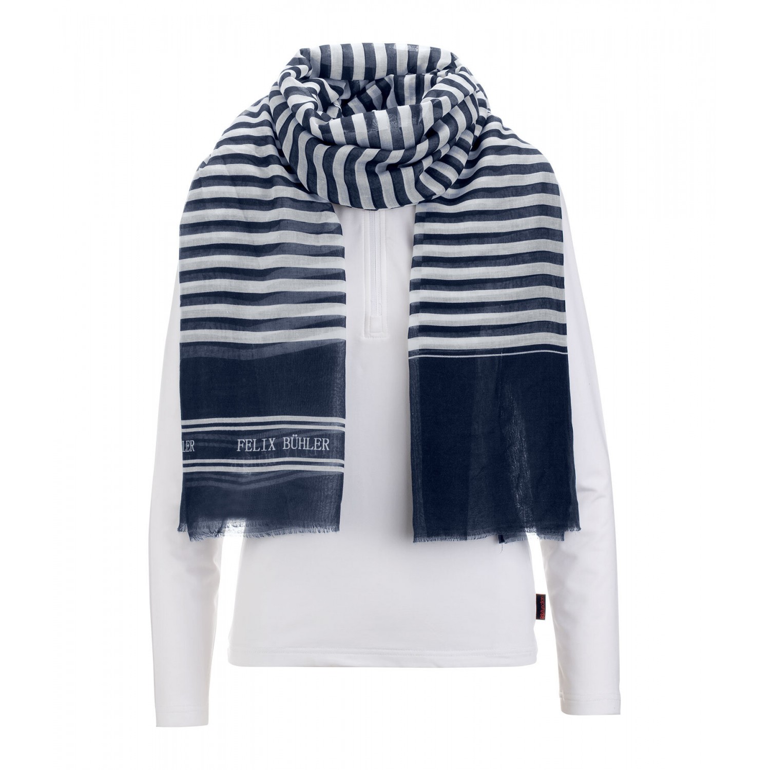 Прямоугольный летний шарф из тонкого, мягкого материала с морским полосатым узором. 100% полиэстер.