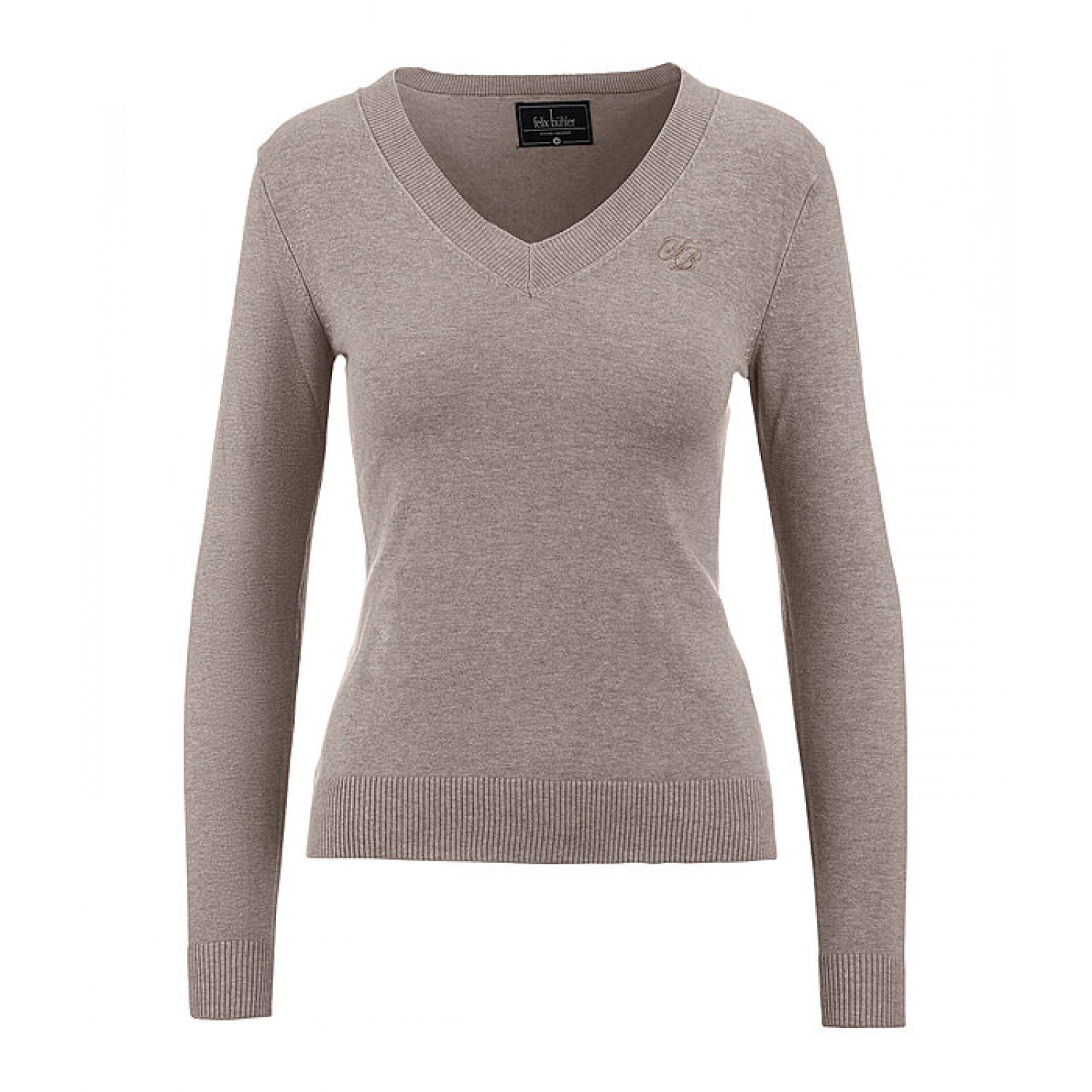 Мягкий пуловер с V-образным вырезом и изящной вышивкой Felix Bühler на груди. Подол, манжеты и концы рукавов отделаны резинкой. 80% вискоза, 20% нейлон.