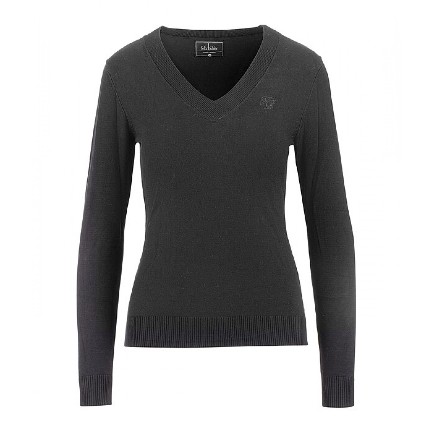 Мягкий пуловер с V-образным вырезом и изящной вышивкой Felix Bühler на груди. Подол, манжеты и концы рукавов отделаны резинкой. 80% вискоза, 20% нейлон.