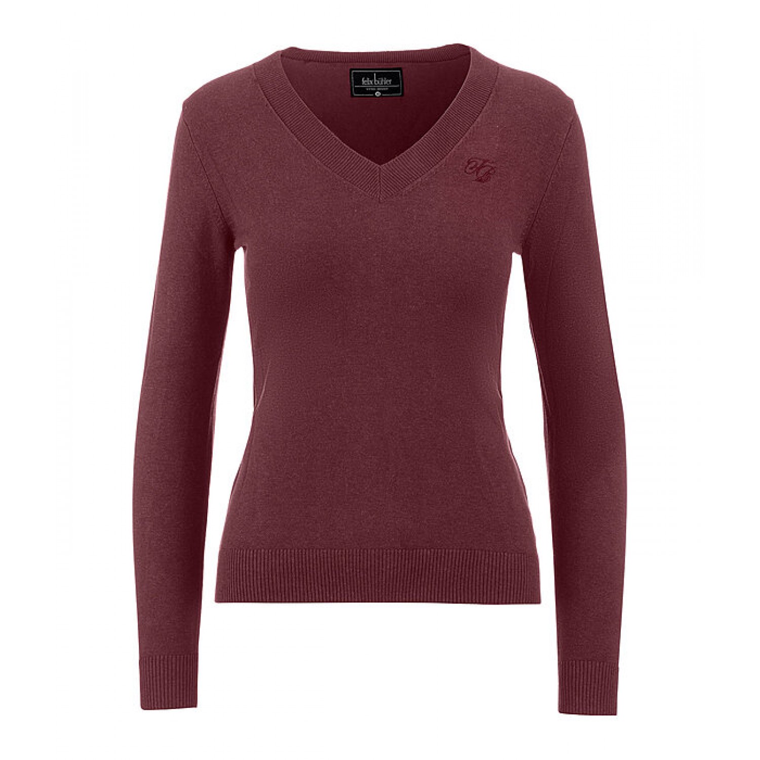 Мягкий пуловер с V-образным вырезом и изящной вышивкой Felix Bühler на груди. Подол, манжеты и концы рукавов отделаны резинкой. 80% вискоза, 20% нейлон.