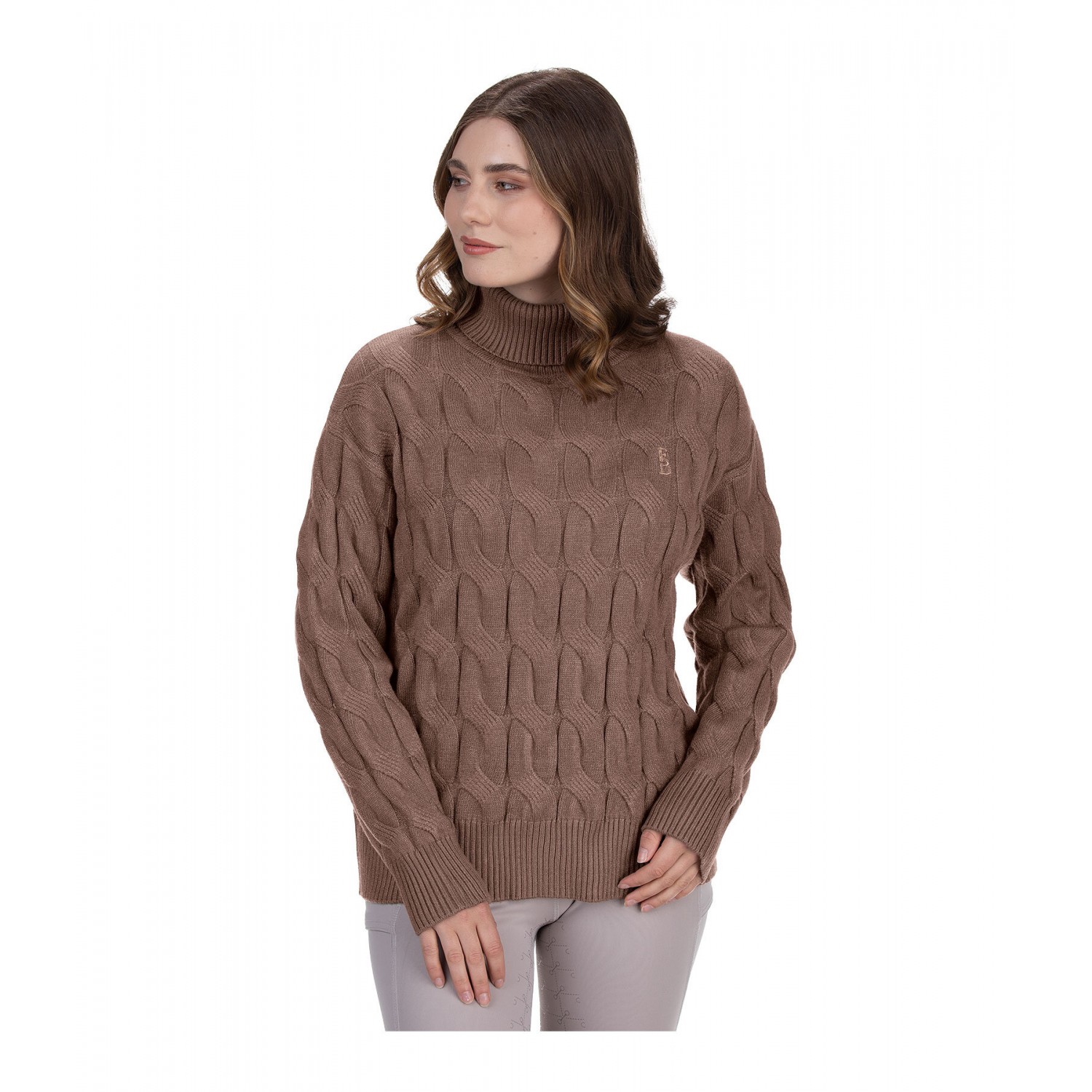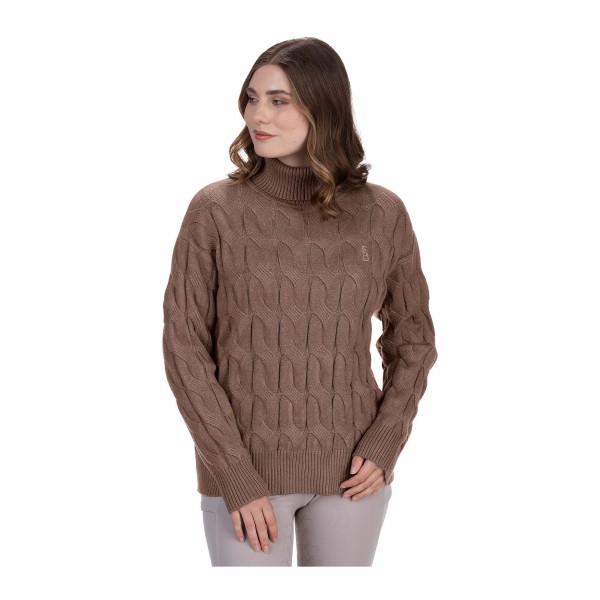 Очень мягкий и тёплый пуловер с узором крупной косы. Состав: 54% полиакрил, 28% полиэстер, 18% нейлон.