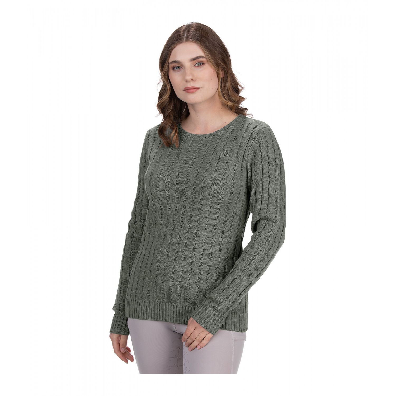 Классический мягкий свитер с круглым вырезом и узором «косы». Вышивка «Феликс Бюлер» на груди. Состав: 60% хлопок, 40% полиакрил.