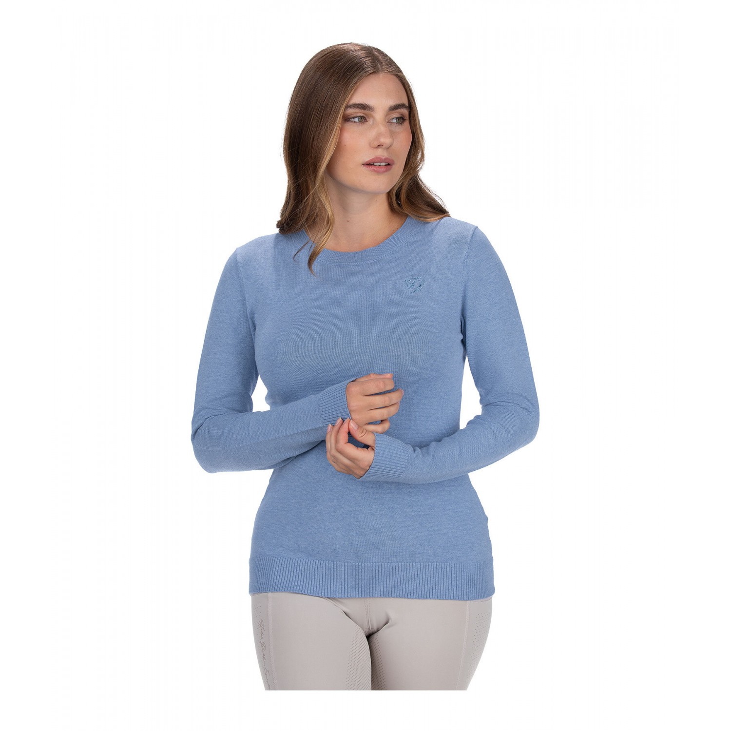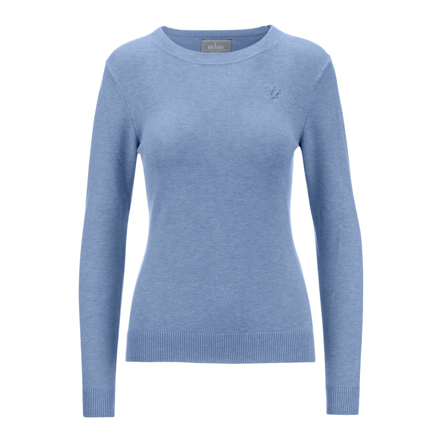 Вязаный пуловер с круглым вырезом и изящной вышивкой на груди. 80% вискоза, 20% нейлон.
